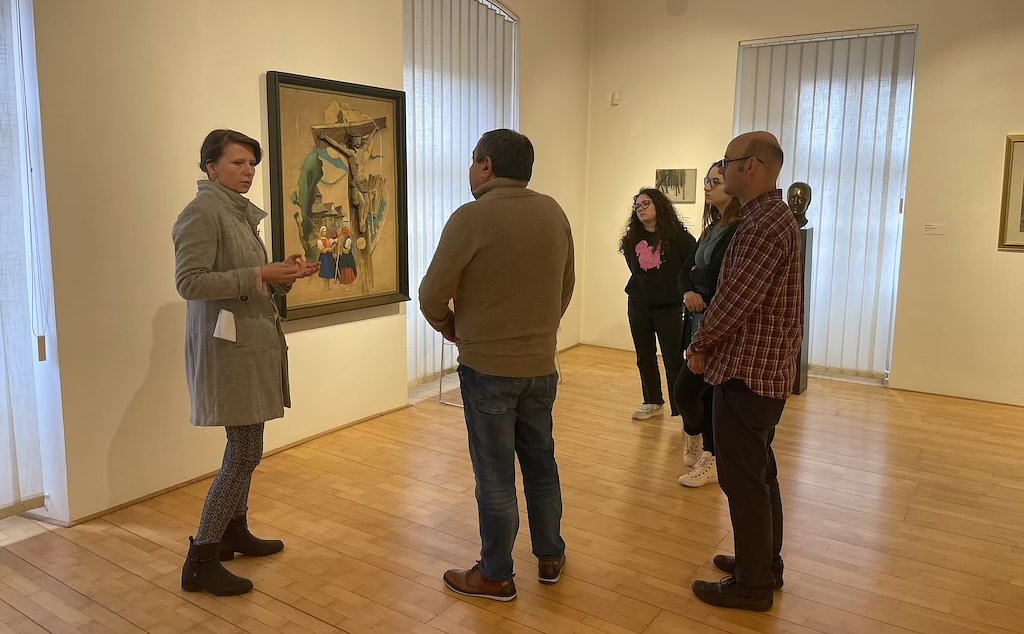 Each year, our university welcomes several international students, mainly Erasmus+ students, who spend a semester or two studying in Ruzomberok. Discover Slovakia is one of the courses organized at the Faculty of Arts and Letters, which is offered to these students so they can learn new things about our country. This year, except regular classes, these students had a chance to visit the Orava Gallery in Dolny Kubin to find out more about the visual arts in Slovakia. The group of students, joined also by our visiting scholar Irakli Tskhvediani from Kutaisi in Georgia, was welcomed by Katarina Matuskova, our former colleague and current doctoral student, who is an art historian in the gallery. She told the group a lot about various artists, their works and in this way, students had a chance to see directly both the works from the older times but also the works of such renowned artists as Mikulas Galanda, Martin Benka, Koloman Sokol, Albin Brunovsky, Vladimir Popovic or Jan Kudlicka.