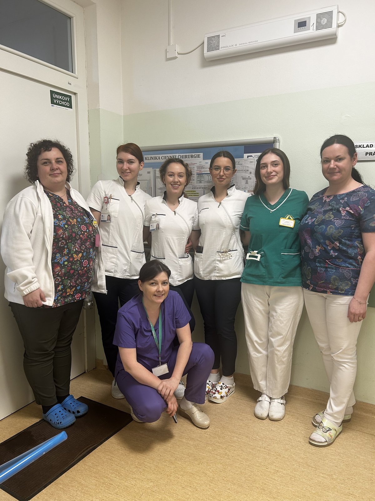 After the OSH training with Ing. Stašová from the Military hospital, students completed their intership at the Clinic of Orthopedics and Traumatic Surgery under the guidance of head nurse PhDr. Mgr. Zuzana Brčeková, MPH. dipl.s., then at the Department of Vascular surgery with the head nurse Mgr. Adriana Dubovská and at the Nuclear Medicine Clinic under the guidance of prof. Anton Lacko, CSc.. The practical intership continued at the Surgical Clinic under the guidance of the head nurse, PhDr. Iveta Kurová and in the Emergency department under the leadership of the head nurse Mgr. Ida Šrobárová.