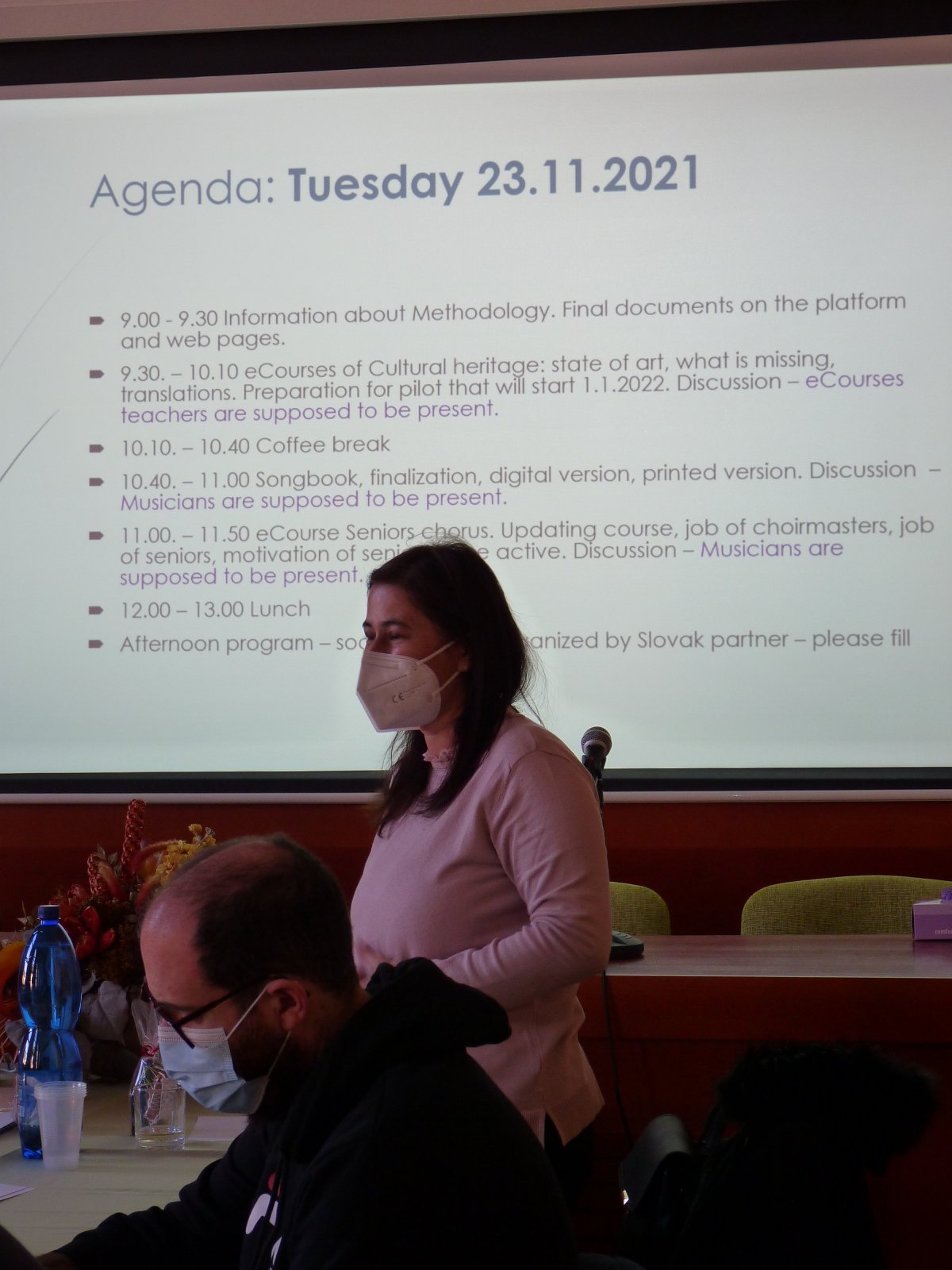 On November 23-24, 2021, a planned working meeting of managers, lectors, and music experts from all partner countries took place in the Organ Hall of the Dean's Office of the FZ KU, in which the fulfilled tasks of the project were evaluated and the implementation of other outputs was specified.The fulfillment of tasks by the Slovak partner so far was evaluated very positively, while the exemplary adherence to the set deadlines was especially emphasized.The realized outputs include the creation of a common internet platform for information sharing and mutual communication, elaboration of a common methodological procedure for senior churches in two versions: creation of e-learning courses on the cultural heritage of each partner country in three language versions and preparation of an original international songbook for joint education. In the next year of the solution, piloting will take place, i. j. implementation of prepared documents into practice in the senior environment and preparation of selected seniors from all partner countries for the final output in September 2022 in the form of an international concert. At the end of the meeting, all participating experts stated that the project was being handled very well, despite the ongoing pandemic situation, and appreciate the benefits of mutual international cooperation to date.