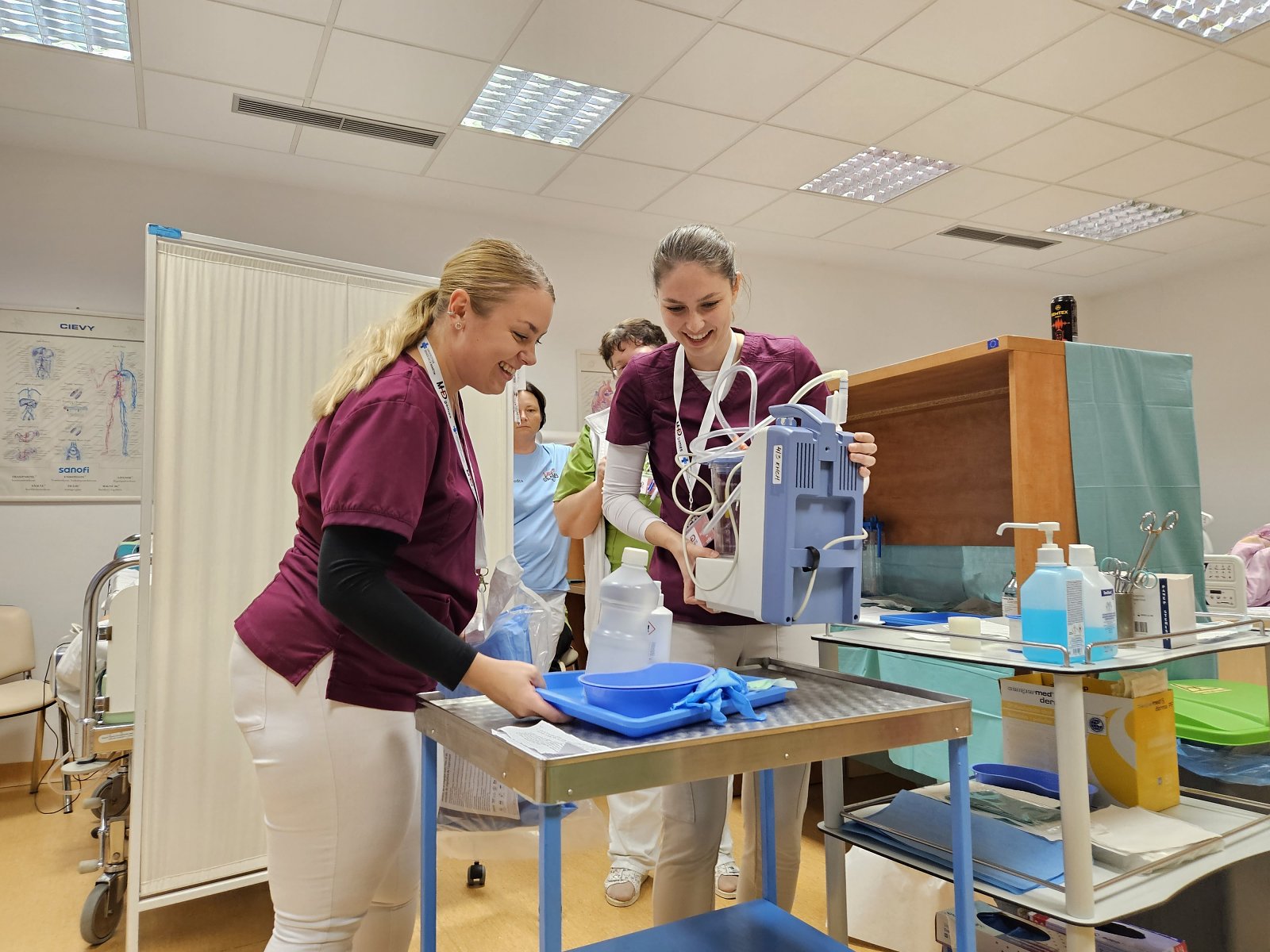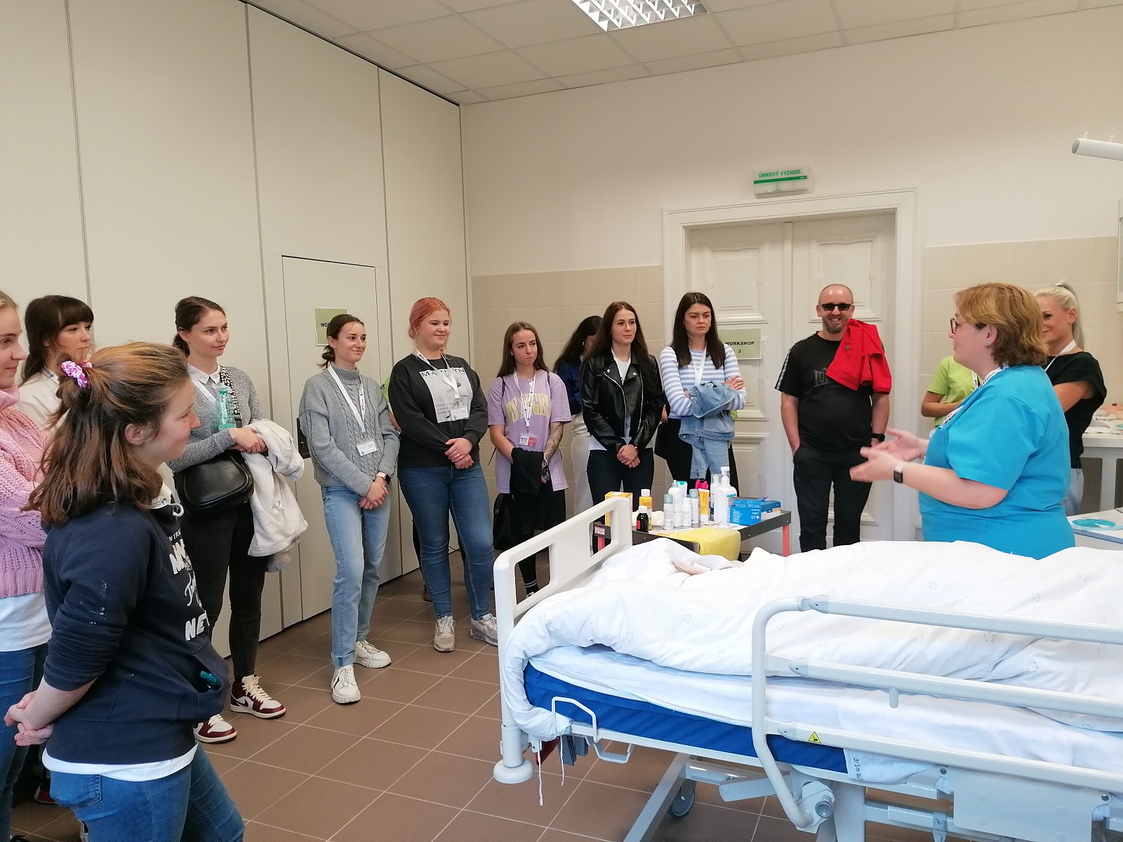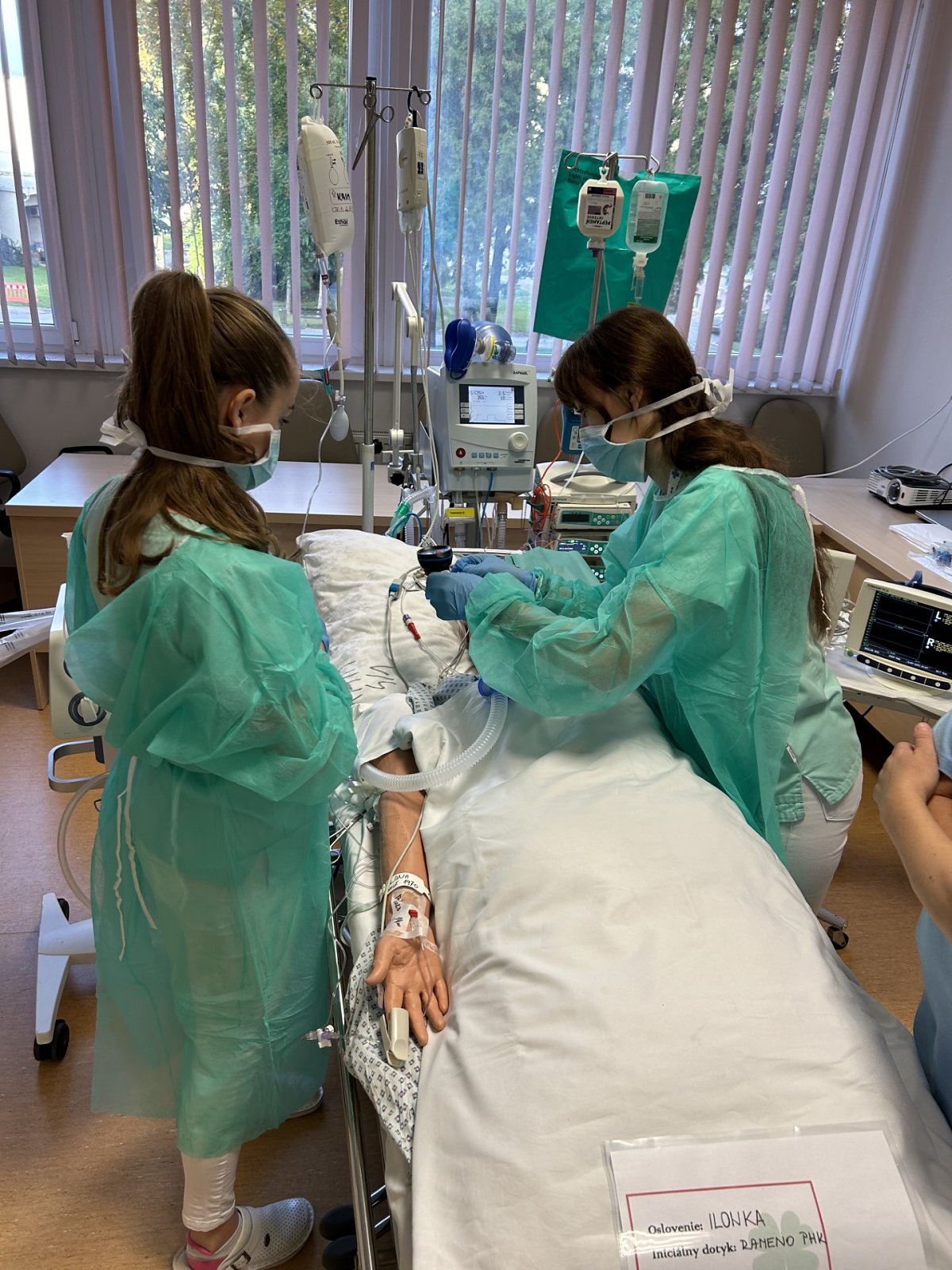 On Saturday they continued with the competition block at Martin University hospital, during which students solved various tasks and case studies at 15 locations (for example carying for patient with burns, changing a chest drain, admitting a patient to the postoperative room, communicating with the family within the donor transplant programm, toilet of the airway in a patient on artificial pulmonary ventilation, blood sampling in a closed manner, ileostomy care, cardiopulmonary resuscitation, first treatment of a newborn, dressing of an external fixator of a limb, administration of food through a nasogastric tube, care and administration of food and drugs into the PEG with subsequent education and others).