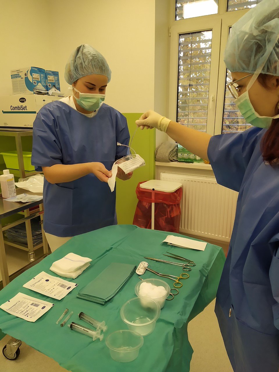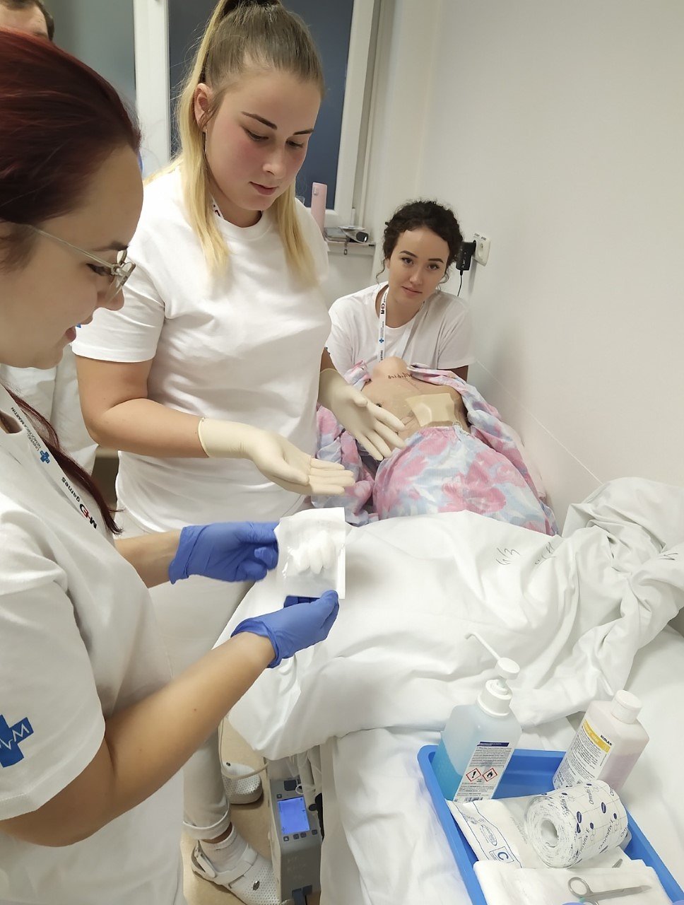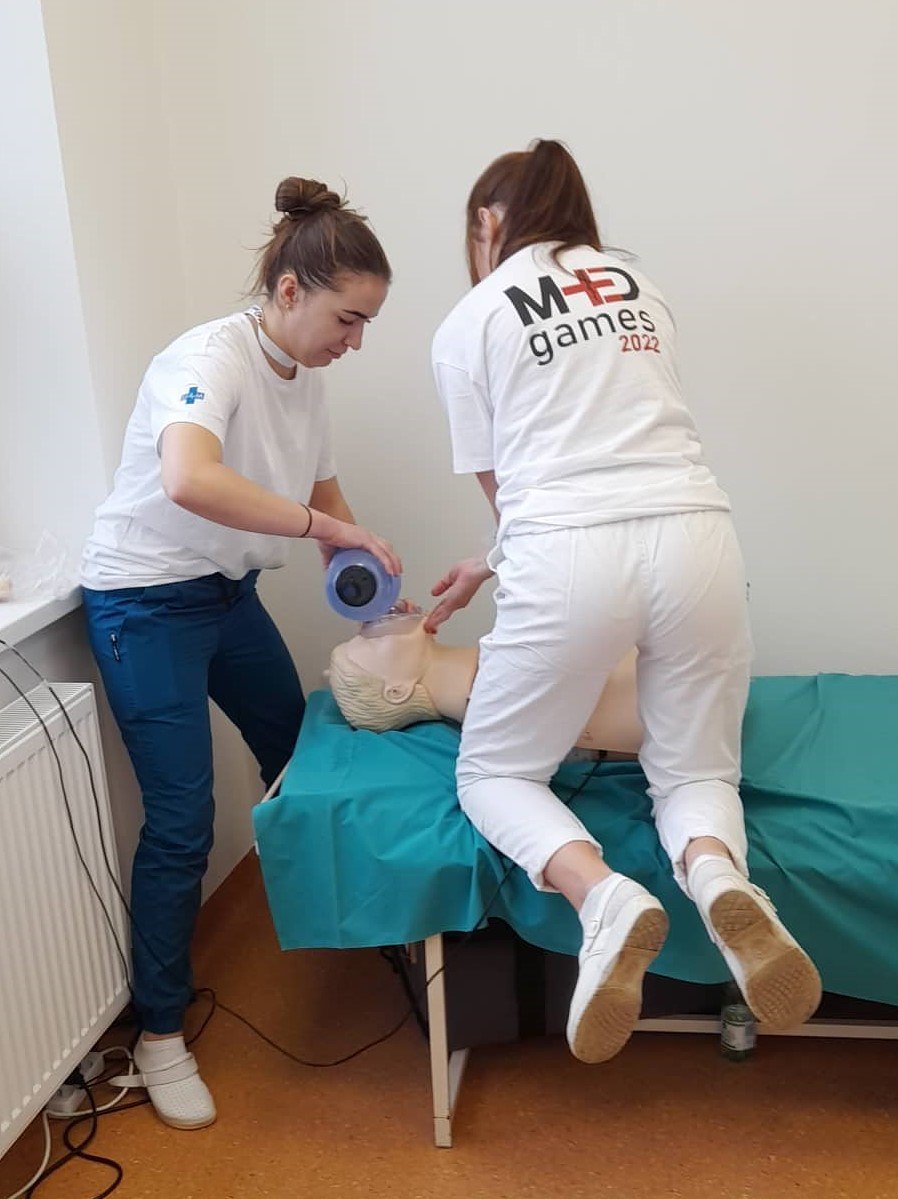 Students of the 2nd and 3rd years of the bachelor's study nursing program at the Faculty of Health of the Catholic University in Ružomberok, Natália Klepáčová, Michaela Kmeťová, Patrícia Filipová and Terézia Hanobíková, actively participated in the 7th year of the international competition for students of general medicine and nursing MedGames 2022, where they competed in teams of two . The competition was held from 21st October to 22nd October 2022 under the auspices of the Martin University Hospital, the Jessenius Faculty of Medicine of the UC (JFM UC) in Martin and the Martin Medical Club. During the first day, students had the opportunity to attend interesting workshops at the JFM UC in Martin, after which the competition was started with the first block. At individual positions, the participants expanded their knowledge about infusion pumps, ostomies, suture removal, patient education before surgery and more. In the evening, a simulated mass casualty took place with patient triage practice. The second and third competition block continued on the grounds of the Martin University Hospital, during which the students solved various tasks and case studies at 15 positions (for example collapse first aid, receiving a call on the emergency line, cardiopulmonary resuscitation, stoma care, blood collection, introduction of peripheral intravenous cannulas, use of an infusion pump, preparation of a sterile table, assistance with spinal anesthesia, communication during a suicide attempt, removal of sutures, coiling of a woman, including injection and wound dressing). 3rd year students Patrícia Filipová and Terézia Hanobíková finished in a beautiful 4th place out of 19 teams (38 students). The students evaluated their participation in the competition as follows: "We verified and deepened the acquired knowledge and skills in specific situations, we learned to make quick decisions and work in a team. It was a very good experience. When we still have the opportunity to participate in such an activity, we will go again. We definitely recommend it to others." We sincerely congratulate the students!