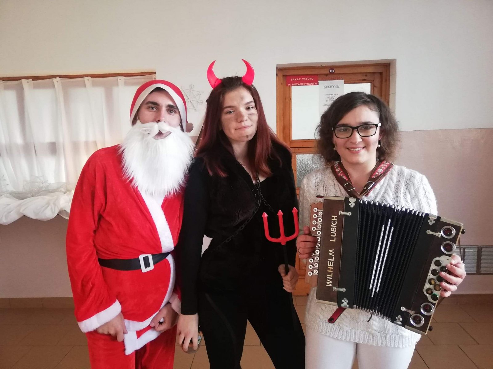 For the Faculty of the Health care of the Catholic university in Ružomberok, it has been a tradition for several years to prepare a St. Nicholas´gazebo for patients who, because of their health problems, can not expect St. Nicholas at home with their closest relatives. St. Nicholas and his assistents – our nursing students Viera Morongová, Natália Laššáková, Lukáš Bariak, Natália Habáňová, Michaela Kluciarová and student from A.Dubček´s University in Trenčín, Pavol Morong, don´t have forgotten the patients of the Children´s clinic, Oncology clinic, the Aftercare clinic and also clients of the Center of the Social Services Trojlístok. At least a little joy and smile in the suffering were brought by the students under the leadership of the head of the nursing department PhDr. Marcela Ižová, Phd., through accordion music, wooden St. Nicholas medals and small sweet gifts thanks to Marek Menich (Metro Žilina) and Roman Vereš from Rover company. The words of the participants also speak about the progress of the event:“ It was a wonderful event full of joy, singing and humility, which was carried in the pre-Christmas spirit. The joy in the eyes of the patients, who had not seen anyone else but the medical staff for a long time, was breathtaking. The Centre Trojlístok left a big mark on us. They prepared a wonderful program for us, during which they danced, sang and performed a folk group. Most of the clients, although they were adults, had the hearts of children and when they saw how happy we were for them, they were very happy and excited about it. We believe that this event will continue next year".