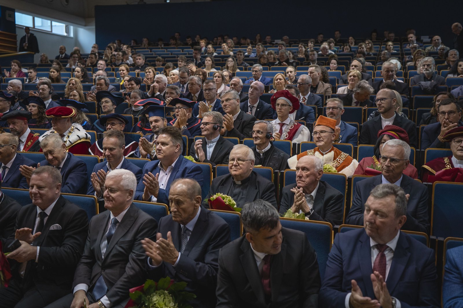 After the Mass, the participants in the celebrations moved to the St. John Paul II Auditorium, where a ceremonial assembly of the academic community took place. During it, a speech was given by the President of the Slovak Republic, Peter Pellegrini, in which he described the university as extremely important in today's world. This was followed by speeches by the rector, the apostolic nuncio and the bishops present. We will discuss the speeches in a separate article.