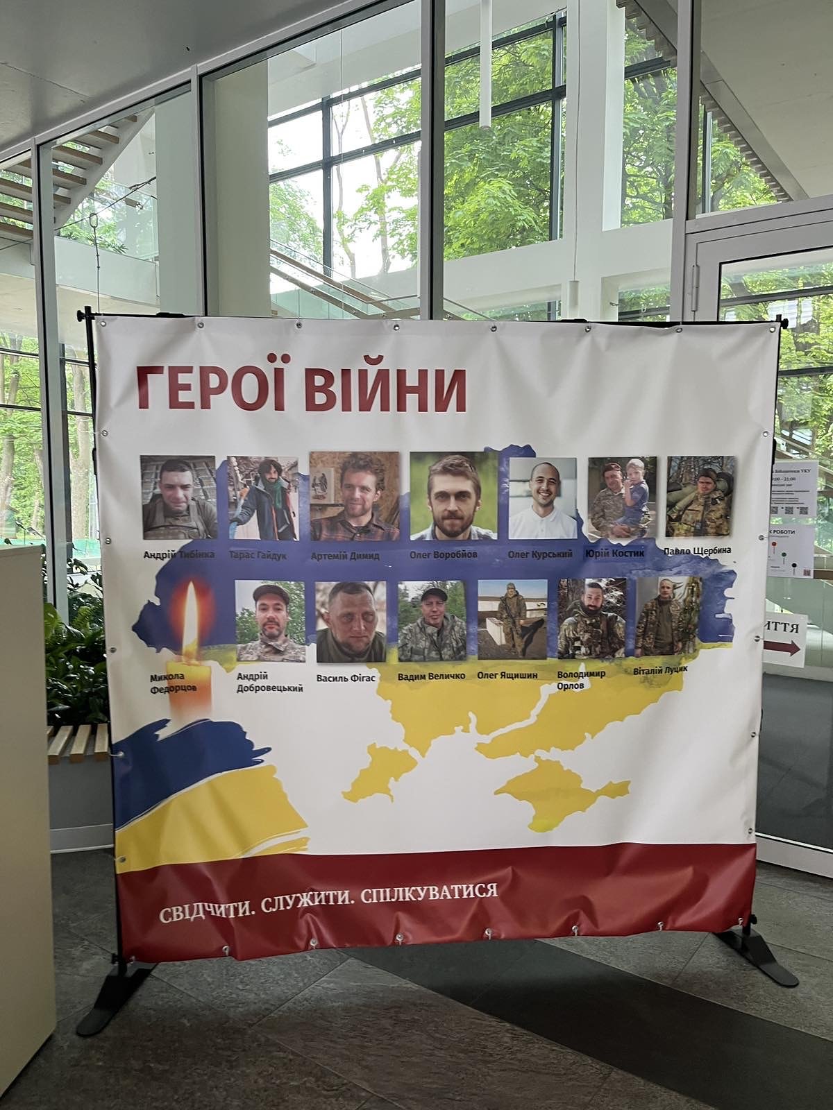 Of course, I was very interested in the overall situation, the functioning of their university in a state of war, but also the challenges they face. At first glance, Lviv is a very lively city during the day and in the evening, full of people in the parks, in the center, full of students in the UCU university town. However, traces of the war are visible everywhere: soldiers on the streets, ubiquitous Ukrainian flags, exhibitions (posters by graphic designers reacting to the war) or commemorations of war heroes. UCU alone has lost 19 students, graduates, people from their community in the war. Several of their students volunteered for the frontline. Lviv and the Lviv region have always been known for their national awareness, dominance of the Ukrainian language and support of the Ukrainian culture. It seems the war strengthened the Ukrainian identity and brought it to Eastern regions.