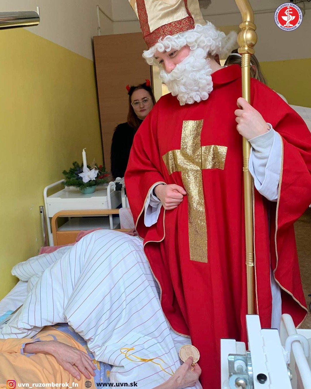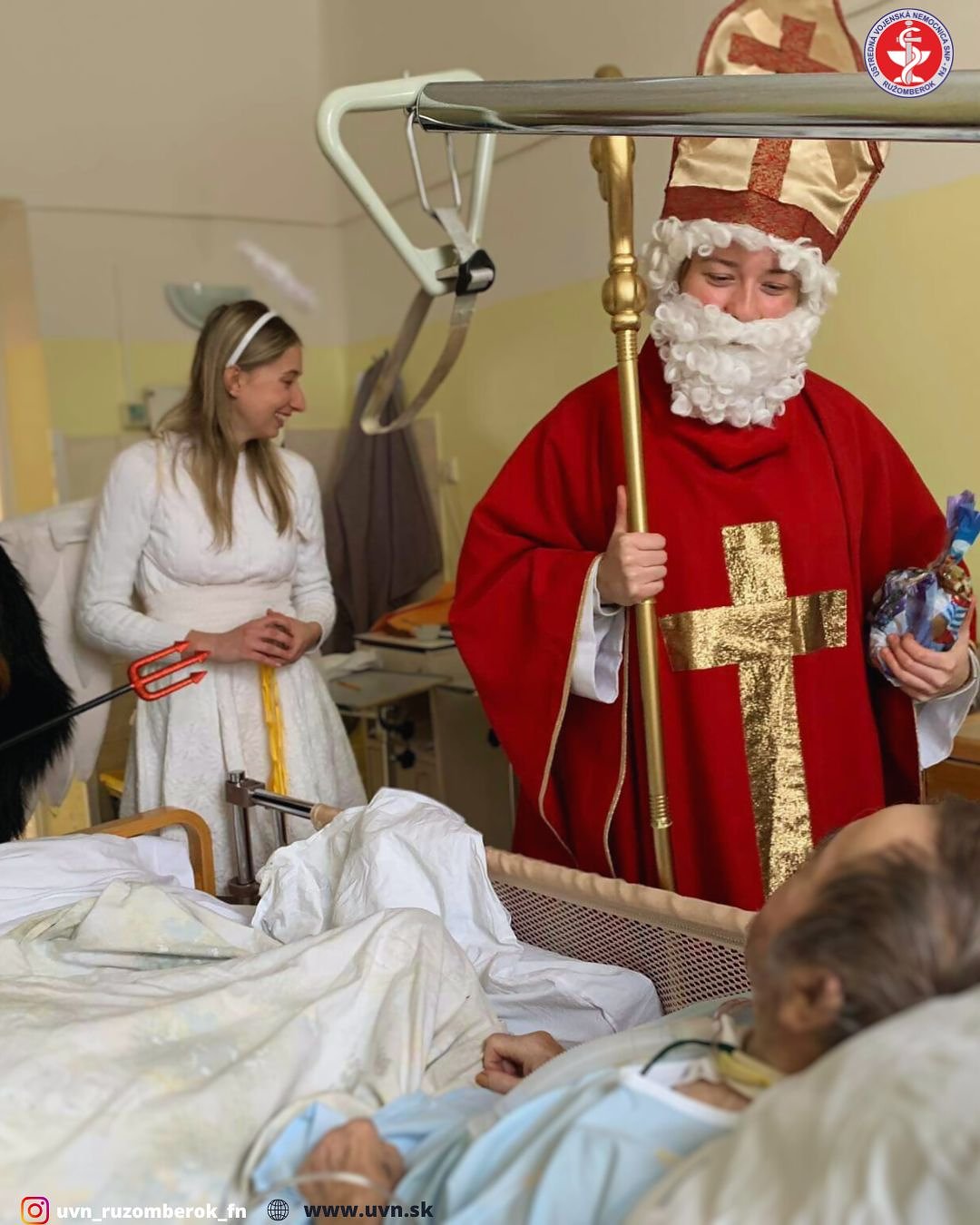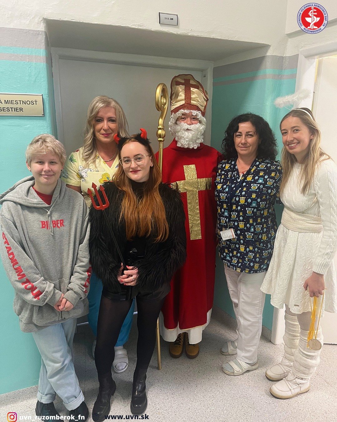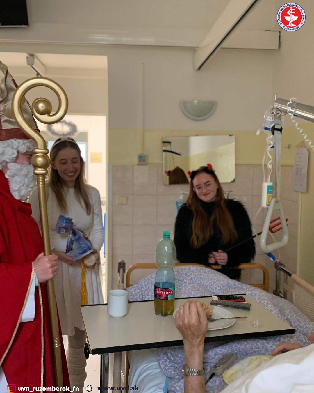 Ani tentokrát Mikuláš so svojimi vernými pomocníkmi, anjelikom, čertom a fotografom nezabudol na svoju tradičnú návštevu a zavítal do Ústrednej vojenskej nemocnice SNP Ružomberok – FN a Centra sociálnych služieb (CSS) Trojlístok v Ružomberku. Študent Bc. Pavol Mogora z Trenčianskej univerzity A. Dubčeka v Trenčíne a študenti 2. ročníka dennej formy bakalárskeho študijného programu ošetrovateľstvo Fakulty zdravotníctva KU v Ružomberku Andrea Dibdiaková, Natália Švajleninová, Natália Hollá, Lucia Pokrievková 6. decembra 2023 navštívili detskú kliniku, onkologickú kliniku, oddelenie dlhodobo chorých a klientov Trojlístka. Akciu „Mikuláš“ obohatili vlastným emotívnym programom klienti z Trojlístka a to hrou na hudobné nástroje (elektronický klavír, husle), tancom, prednesom básní a „čertovským programom“. Aspoň trošku radosti a úsmevu v utrpení priniesli študenti pod vedením vedúcej katedry ošetrovateľstva PhDr. Marcely Ižovej, PhD. Veľká vďaka patrí dobročinnosti sponzorov Bc. Pavlovi Mogorovi, Marekovi Menichovi (Metro Žilina) a Romanovi Verešovi z firmy Rover za zabezpečenie spomienkových medailí Svätého Mikuláša a sladkých prekvapení. O priebehu akcie hovoria aj slová účastníkov: „Bola to perfektná akcia plná otvorených sŕdc, spevu, úsmevu, pokory, ktorá sa niesla v predvianočnom duchu. Klienti CSS Trojlístok v nás zanechali nezabudnuteľný zážitok, ktorý vyčaril ako im tak aj nám úsmev na perách a aj slzu v očiach od nadšenia. V nemocnici, či už deti alebo dospelí venovali „Mikulášovi“ pieseň alebo krátku básničku. Veríme, že táto akcia bude pokračovať aj ďalší rok“.