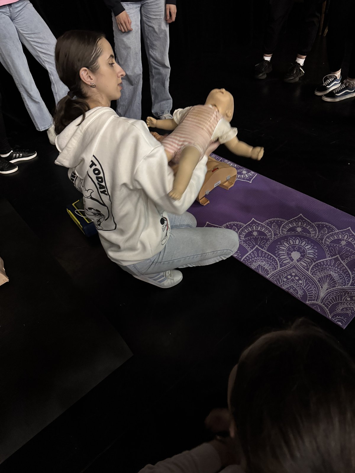 Koniec výučbovej časti letného semestra bol už po tretíkrát aj znamení rovesníckeho vzdelávania a medzifakultnej spolupráce. V dňoch 5. a 12. mája 2025 prebehol praktický nácvik poskytovania prvej pomoci v rámci výučby predmetu Somatický vývin dieťaťa a dorastu, ktorého garantkami sú RNDr. Mária Balážová, PhD. a MVDr. Gabriela Hrkľová, PhD.. Keďže ide o povinný predmet všeobecného základu, určený pre študentov pedagogických študijných programov na Pedagogickej fakulte Katolíckej univerzity v Ružomberku, je v ňom zapojený vysoký počet študentov, preto praktická výučba bola realizovaná v spolupráci so študentkami Fakulty zdravotníctva Katolíckej univerzity v Ružomberku (FZ KU) pod odbornou gesciou PhDr. Mgr. Mariany Magerčiakovej, PhD., MPH, MBA. V rámci konceptu rovesníckeho vzdelávania študentky 2. ročníka bakalárskeho študijného programu ošetrovateľstvo na FZ KU Eliška Dinková, Michaela Kvardová, Daniela Dudová, Kristína Kapičáková. Bianka Sidorová, Nikola Skaličanová, Tamara Hankovská, Samanta Lea Šverhová, Ema Pastirčáková, Marietta Goliašová, Aneta Babničová a Lenka Chrochotská názorne predviedli postupy laickej prvej pomoci pri náhlej zástave dýchania a srdcovej činnosti, dusení, ako aj správne techniky stabilizovanej polohy a zásady poskytovania prvej pomoci pri život ohrozujúcich stavoch súvisiacich s úrazmi pohybového aparátu a krvácaním.