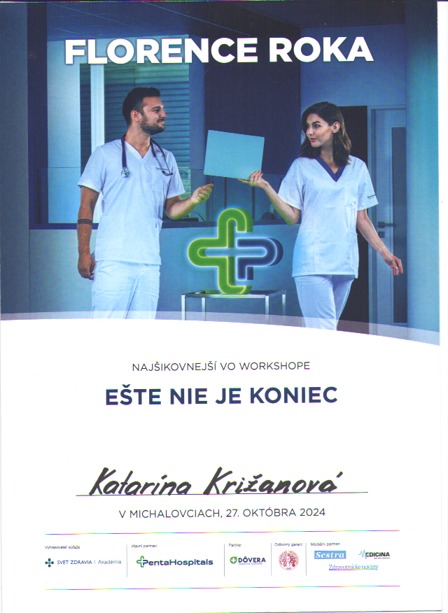 Študentky vyhrali čiastkové súťaže Lenka Hatalová získala ocenenie v tímovej práci a Katarína Križanová získala ocenenie v spolupráci s medikom v súťaži kardiopulmonálna resuscitácia. „Bolo to super, užili sme si každý deň. Atmosféra bola priateľská a veľmi príjemná. Sme radi, že sme sa mohli zúčastniť odbornej súťaže, ako je Florence roka 2024. Každému to vrele odporúčame, nič nestratia, môžu len získať. Upevnilo nás to v našom rozhodnutí stať sa sestrou.“ povedali Katarína a Lenka.