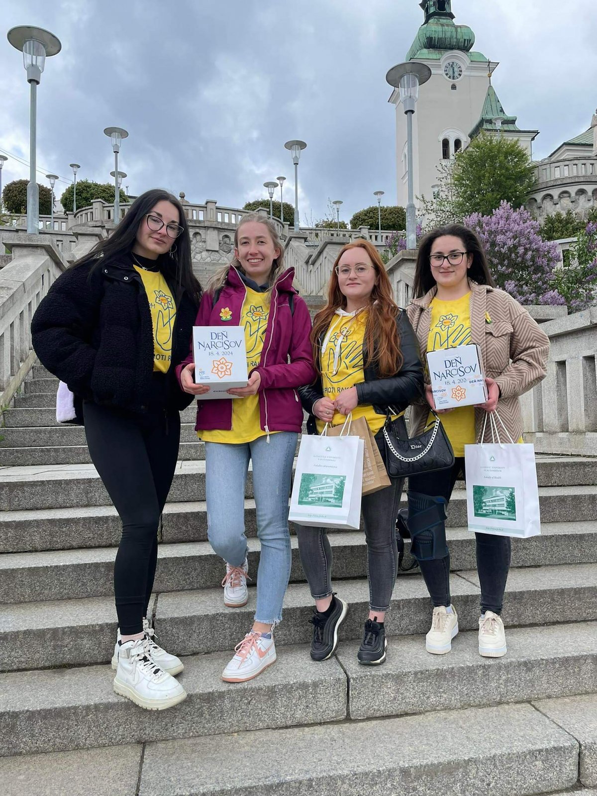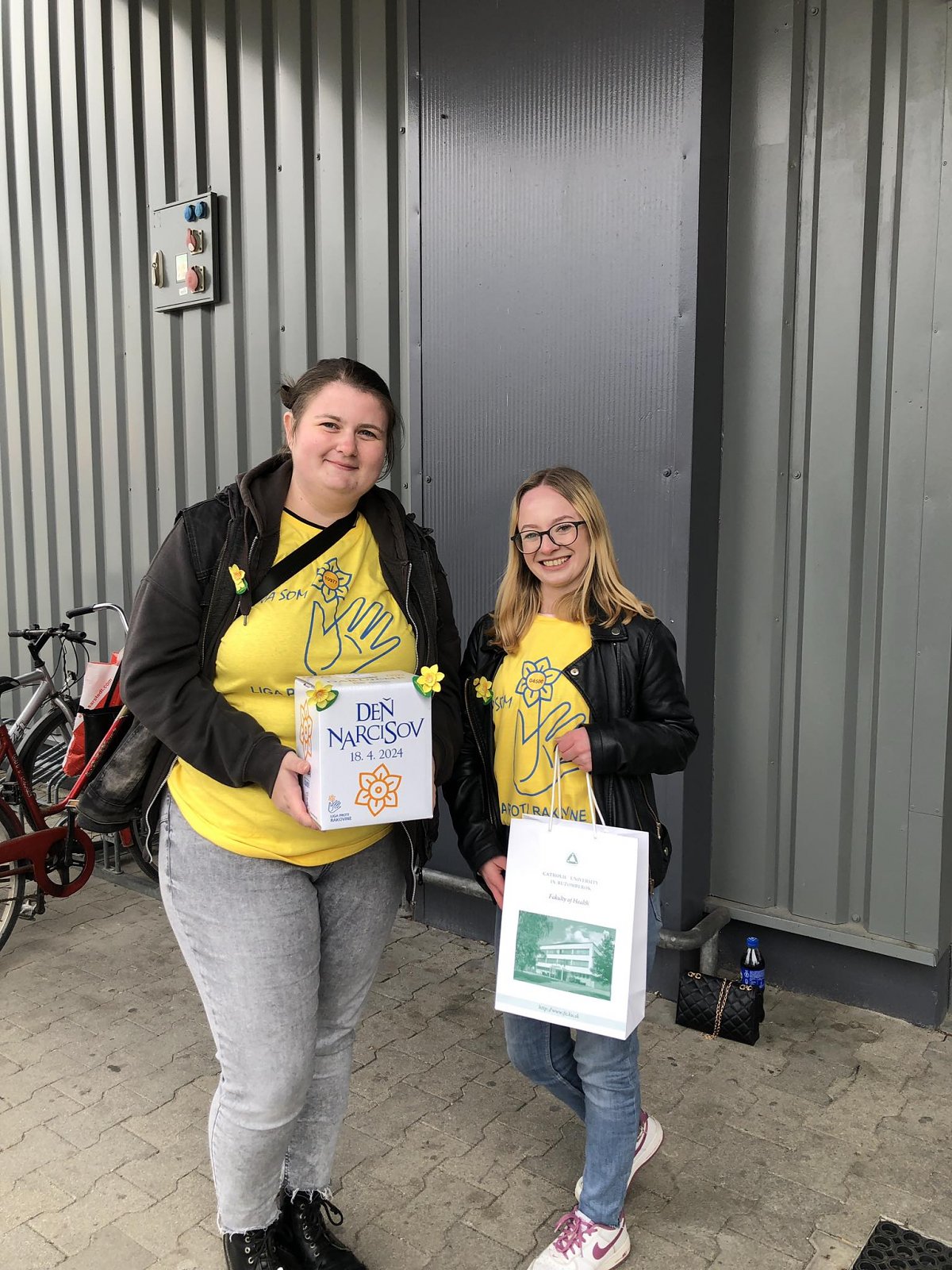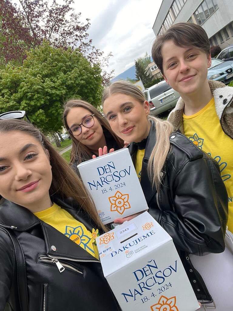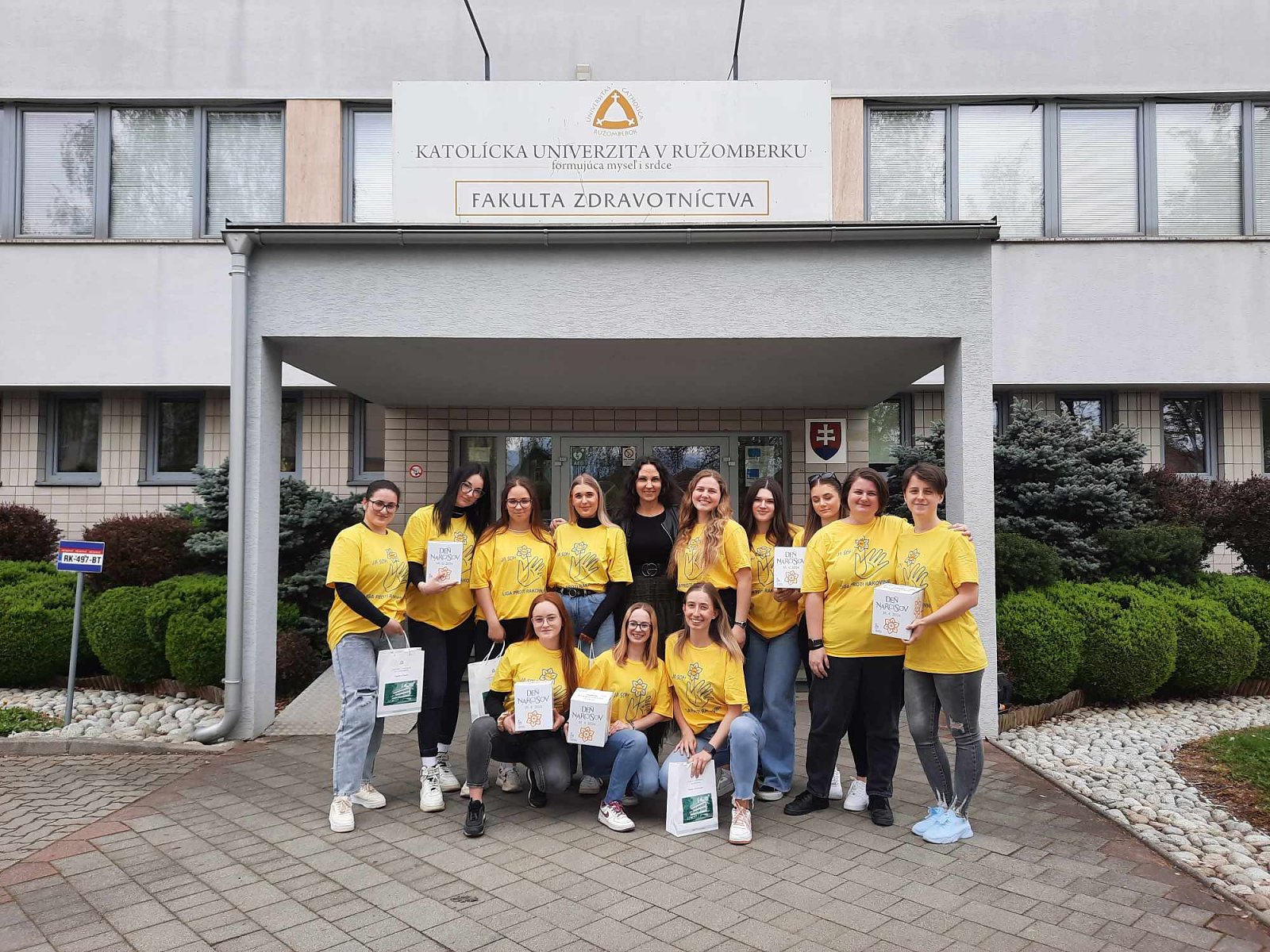Tohtoročný 18. apríl patril tradičnej verejnej zbierke Ligy proti rakovine Deň narcisov 2024. Ochotným prispievateľom pripínali v uliciach Ružomberka symbol zbierky – žltý narcis aj študentky bakalárskeho študijného programu ošetrovateľstvo na Fakulte zdravotníctva Katolíckej univerzity v Ružomberku (FZ KU) Lenka Hatalová, Natália Hollá, Bibiána Juščáková, Sára Laštíková, Simona Majerská, Sára Mikušiaková, Valéria Millá, Rebeka Mrvová, Klaudia Ondrašinová, Terézia Štekláčová, Natália Švajleninová a Bronislava Teniaková. Prevod vyzbieraných finančných prostriedkov na účet Ligy proti rakovine v celkovej sume 1 770,88,- € zabezpečila koordinátorka študentov PhDr. Mgr. Mariana Magerčiaková, PhD., MPH, MBA z Katedry ošetrovateľstva FZ KU. Máme radosť, že sa opäť našlo veľa dobrých ľudí, ktorí do pokladničiek v rukách našich dobrovoľníkov prispeli, za čo im zo srdca ďakujeme!