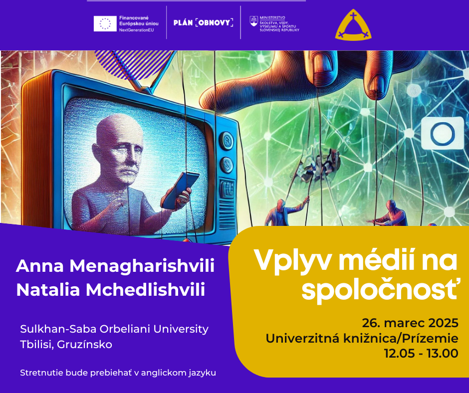 Spolu s psychologičkami z partnerskej univerzity Sulkhan-Saba Orbeliani University (Tbilisi, Gruzínsko) sa pozrieme na to, ako médiá formujú verejnú mienku, ovplyvňujú politiku, kultúru a každodenný život v Gruzínsku. Budeme diskutovať: