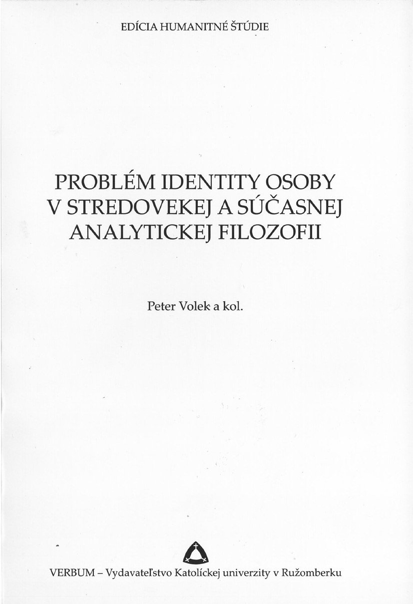 Autori v tejto kolektívnej monografii analyzujú v tejto publikáciu identitu osoby v stredovekej a súčasnej analytickej filozofii. Dana Korineková skúma chápanie človeka u Tertulliana. Miroslav Kuric načrtáva bytostnú dokonalosť osoby u Tomáša Akvinského. Michal Chabada skúma chápanie osoby Dunsom Scotom. Juraj Odorčák skúma systematicky identitu cez teórie konštitúcie a prezistencie. Peter Volek sa snaží nájsť princíp diachrónnej identity ľudskej osoby.