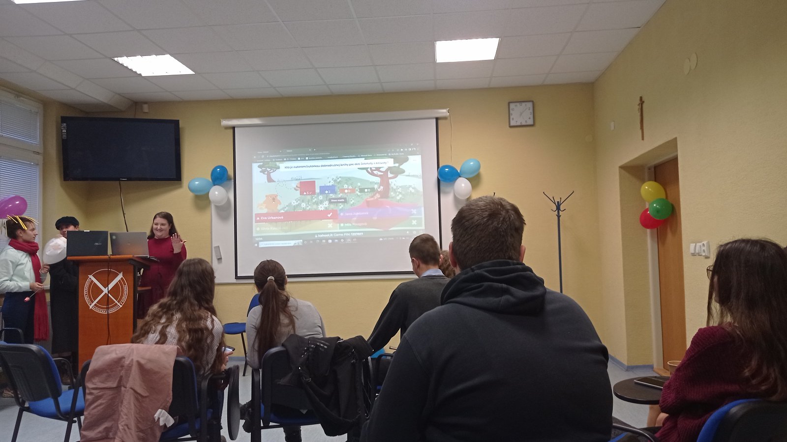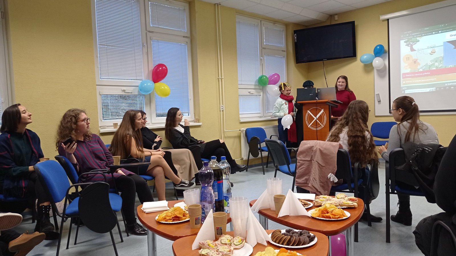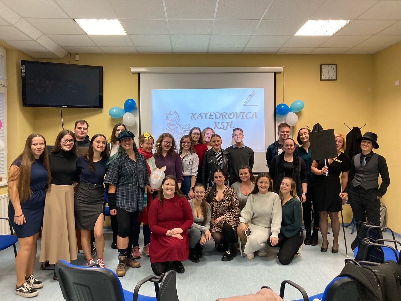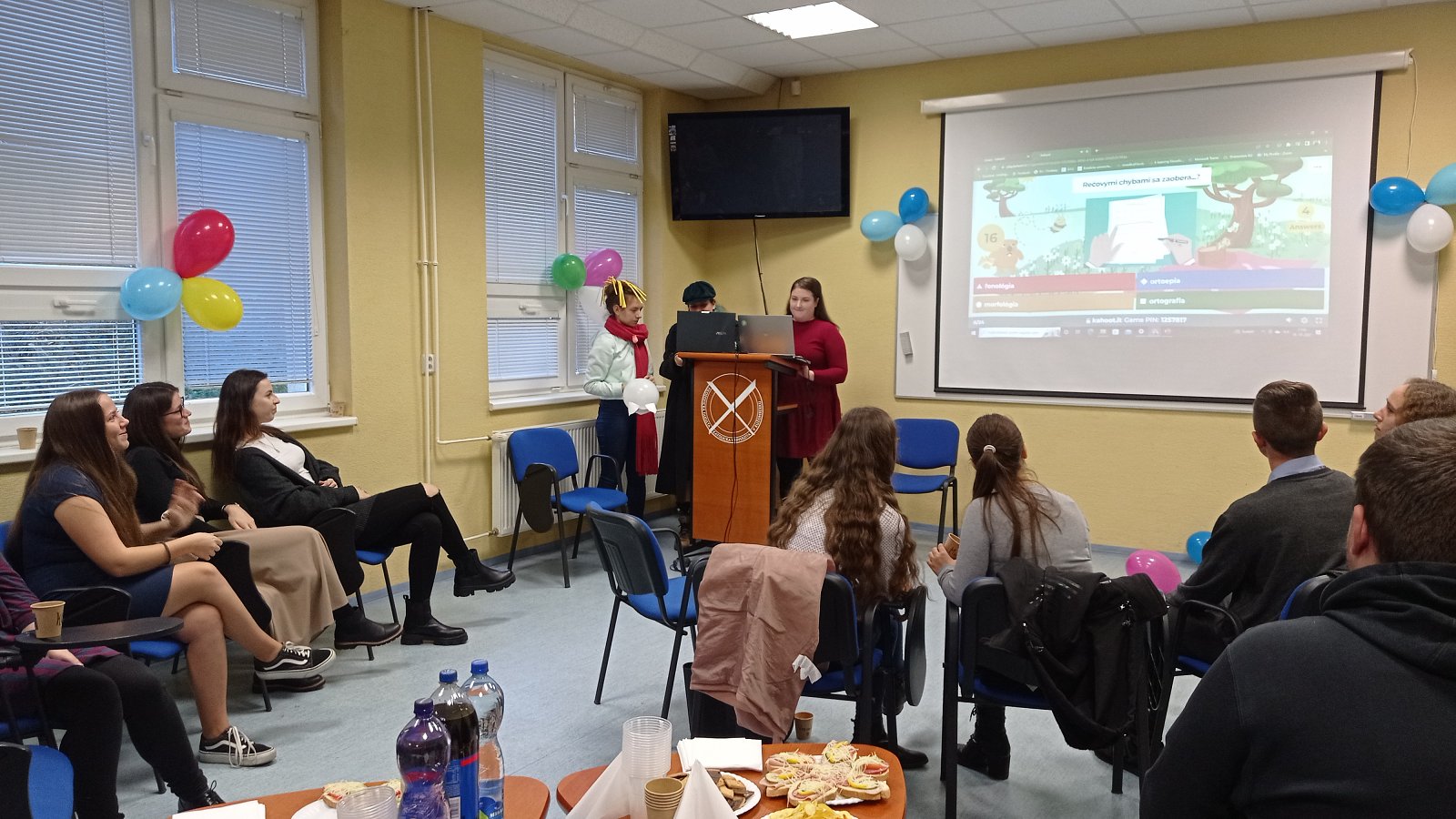 Dňa 26. októbra Katedra slovenského jazyka a literatúry FF KU organizovala prvú postcovidovú Katedrovicu. Súčasťou programu boli rôzne aktivity, ako napríklad súťažný Kahoot, ktorý bol zameraný na život a fungovanie našej katedry, fakulty a univerzity. Tretiaci si pre nás pripravili vlastnú tvorbu v podobe hádaniek slovenských či zahraničných autorov. Cieľom bolo obnoviť život a ducha spoločenstva na našej katedre, ale hlavne privítať nových prvákov a utuženie medzi ročníkových vzťahov. Ďakujeme tretiakom za organizáciu a veríme, že sa v tejto novo-obnovenej tradícii bude pokračovať i v nasledujúce roky. (Text a foto Kristína Jurinová).