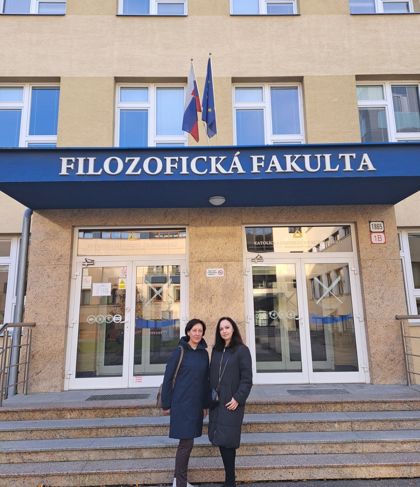 V týždni od 6. novembra 2023 našu fakultu navštívili dve kolegyne z Ľvovskej polytechnickej národnej univerzity na Ukrajine. Olesia Pankiv a Oksana Onyshchuk vyučujú predmety z oblasti filozofie, a preto počas svojho pobytu v Ružomberku navštevovali najmä výučbu na katedre filozofie. Zaujímal ich spôsob výučby, používané metódy ako aj obsah vyučovaných predmetov. Situácia na našich inštitúciách je odlišná, pretože na polytechnike v Ľvove nemajú študijný program z filozofie, ale filozofické predmety učia študentov iných, zväčša technických odborov. Na záver svojho pobytu ocenili možnosť realizovať svoju stáž na našej inštitúcii ako aj kvalitu výučby.