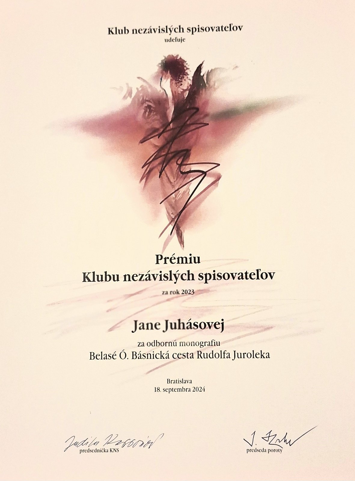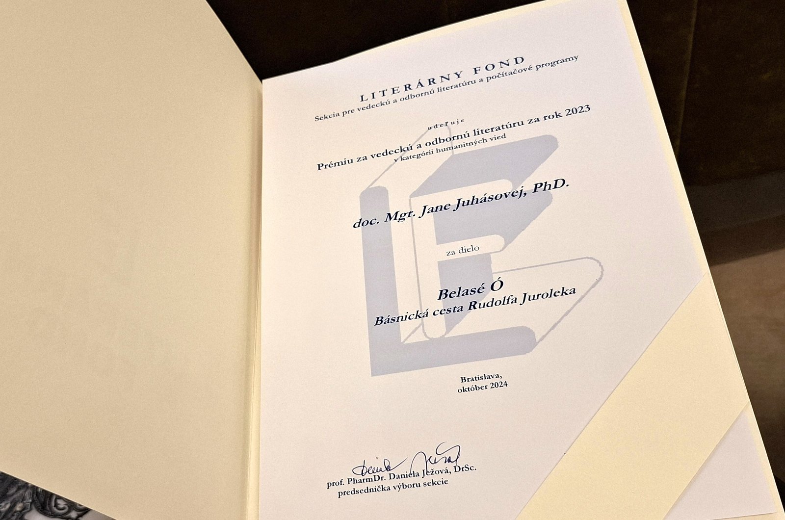1. októbra 2024 bola monografia Belasé Ó. Básnická cesta Rudolfa Juroleka ocenená v Zichyho paláci v Bratislave Prémiou Literárneho fondu za rok 2023 v oblasti vedecká a odborná literatúra, kategória humanitné vedy. Členmi odbornej poroty boli doc. PhDr. Vladimír Segeš, PhD., Mgr. Róbert Karul, PhD., prof. PhDr. Peter Žeňuch, DrSc. a doc. PhDr. Ivan Mrva, CSc. Hlavnú cenu v tejto kategórii získal bývalý vyučujúci Filozofickej fakulty KU, germanista prof. Mgr. Adam Bžoch, CSc. za knihu Konverzácia a európska literatúry (Európa, 2023), v oblasti spoločenských vied dostala najvyššie ocenenie monografia externého spolupracovníka Katedry slovenského jazyka a literatúry FF KU doc. Mgr. Vladimíra Barboríka, CSc. (v spoluautorstve s Radoslavom Passiom a kol.) Literárne krajiny Bratislavy (Veda, 2023). Belasé Ó získalo v Bratislave 18. septembra tiež Prémiu Klubu nezávislých spisovateľov 2023, ktorá bola vyhodnotená väčšinovým hlasovaním členov KNS (predseda poroty doc. PhDr. Igor Hochel, PhD.). Pozornosť pre knihu Slovníček z básničiek prišla prostredníctvom ocenenia Kniha roka Prešovského samosprávneho kraja 2023, oblasť beletria pre deti a mládež – v oboch kategóriách – Cena verejnosti a 1. miesto Cena odbornej poroty (prof. PhDr. Zuzana Stanislavová, CSc., Mgr. art. Mária Staviarska, Mgr. et. Mgr. Iveta Hurná). Do súťaže bola zaradená z dôvodu, že spoluautorka Silvia Kaščáková je Prešovčanka. Okrem týchto ocenení boli obe knihy úspešné už v jarnom súbehu. Kniha Belasé Ó, mapujúca literárny príbeh oravského básnika Rudolfa Juroleka ,získala hlavnú cenu Kniha Oravy 2023, autorská kniha a bedeker teórie poézie pre tínedžerov v jednom Slovníček z básničiek bol ocenený hlavnou cenou Kniha Liptova 2023 a zaradením do Nominačnej kolekcie Najkrajšia kniha Slovenska 2023.