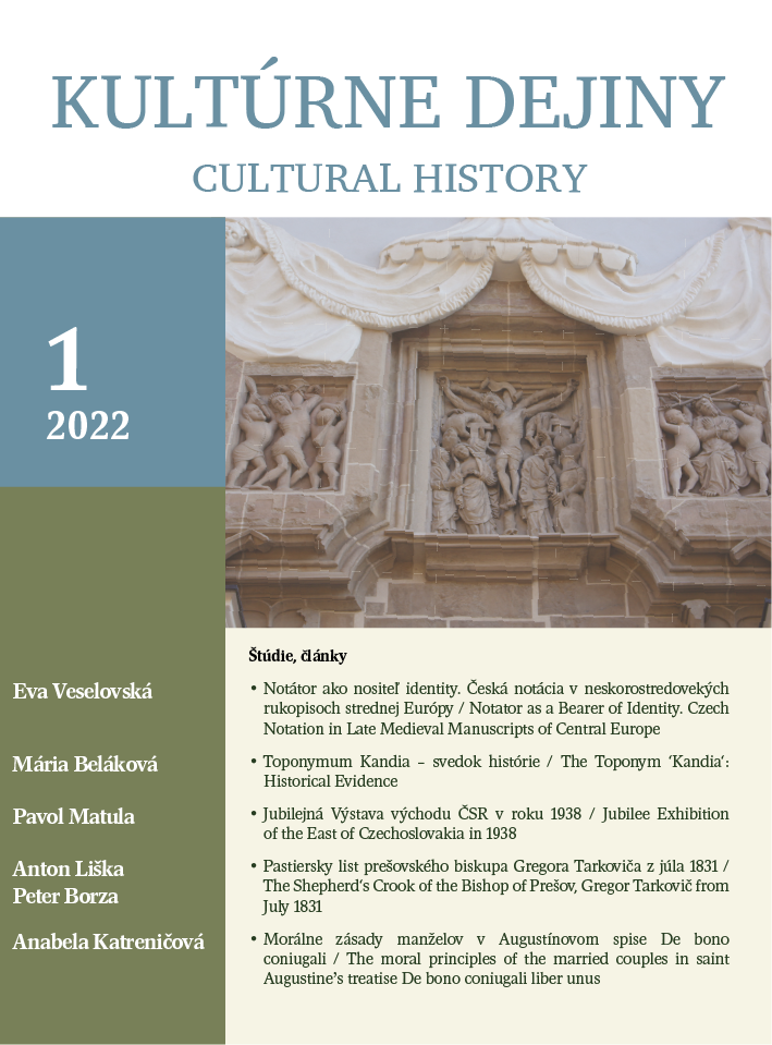 V týchto dňoch vyšlo nové číslo (1/2022) časopisu Kultúrne dejiny. Čitatelia v ňom nájdu päť príspevkov, z nich tri vedecké články a dve materiálové štúdie. Prvý text od Evy Veselovskej Notátor ako nositeľ identity. Česká notácia v neskorostredovekých rukopisoch strednej Európy sa venuje iluminovaným rukopisom z 14. a 15. storočia a identifikácii dobových notátorov. Druhý príspevok Toponymum Kandia – svedok histórie je z autorského pera Márie Belákovej. Autorka v ňom predstavila veľmi frekventované toponymum, ktoré sa používalo a používa naprieč civilizáciami a kultúrnym prostredím. Pavol Matula sa v texte Jubilejná Výstava východu ČSR v roku 1938 venoval málo spracovanej udalosti na sklonku existencie Československej republiky. Dvojica autorov Anton Liška a Peter Borza v príspevku Pastiersky list prešovského biskupa Gregora Tarkoviča z júla 1831 sa venovali prekladu a analýze pastierskeho listu Gregora Tarkoviča, v ktorom sa eparcha venoval cholerovej epidémii, ktorá napadla územie diecézy. Anabela Katreničová v texte Morálne zásady manželov v Augustínovom spise De bono coniugali sa zamerala na analýzu diela sv. Augustína, v ktorom sa venoval otázkam manželstva a učenia cirkvi o tomto inštitúte v ranokresťanskom období.