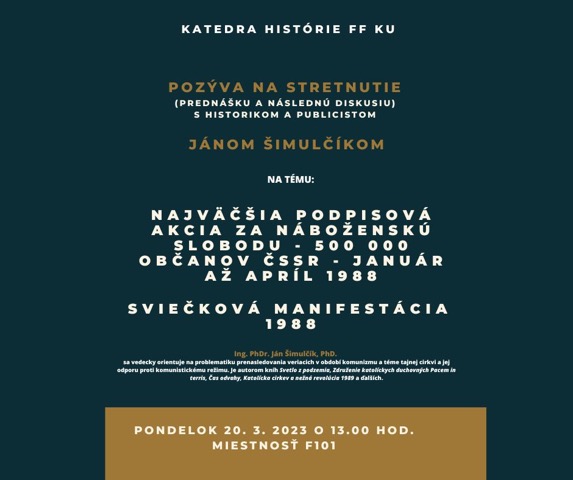 Vás pozýva na prednášku a diskusiu s historikom a publicistom Jánom Mikulčíkom