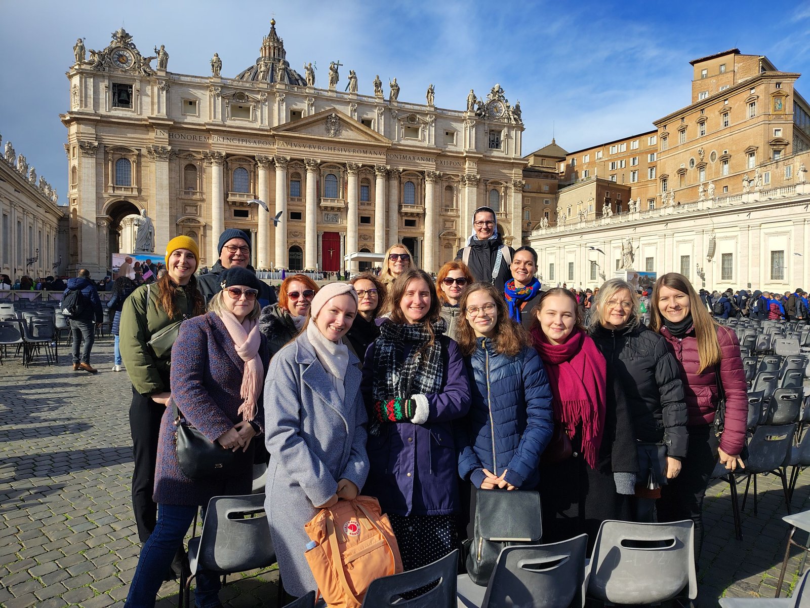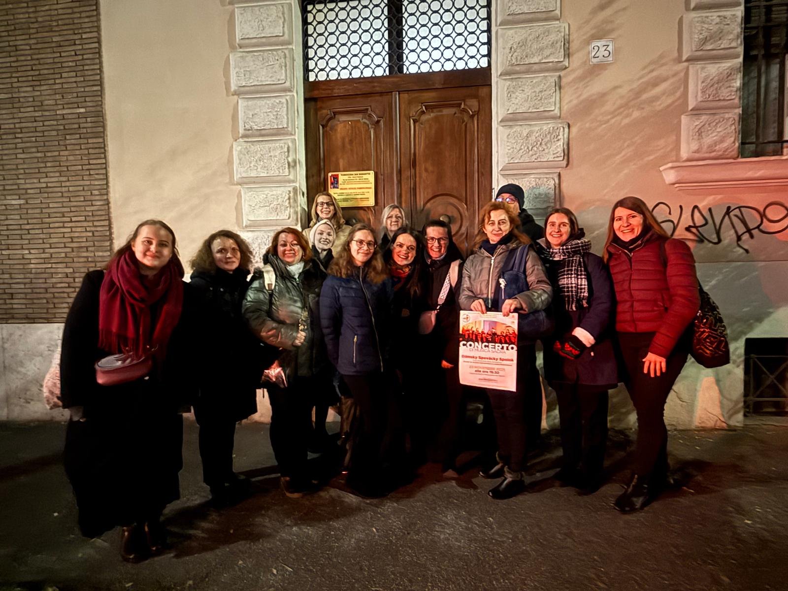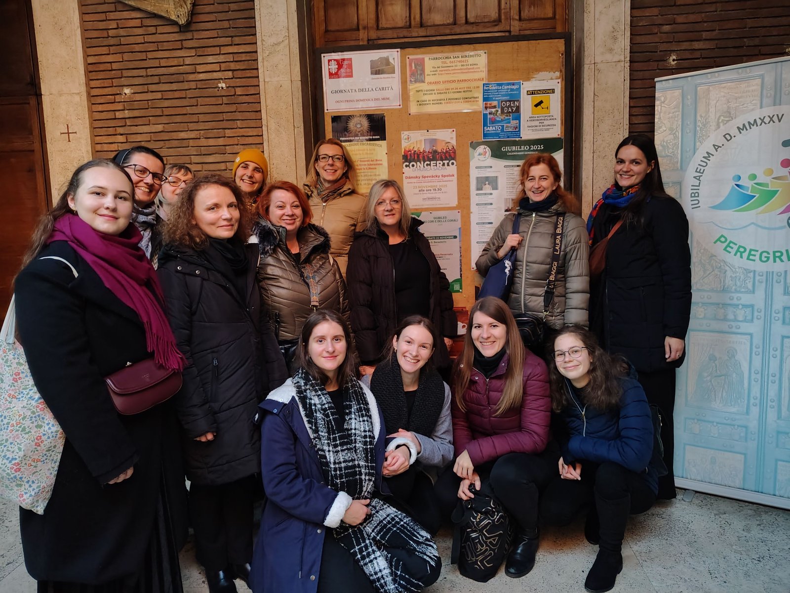 Tohtoročný sviatok sv. Cecílie – patrónky hudobníkov a spevákov oslávili členky Dámskeho speváckeho spolku naozaj mimoriadne – účasťou na Jubilejných dňoch speváckych zborov GIUBILEO DEI CORI E DELLE CORALI 2025 v Ríme, ktorých aktivity prebiehali 22. – 23. novembra 2025. V sobotu dopoludnia sa množstvo hudobníkov z celého sveta stretlo na Námestí sv. Petra na špeciálnej audiencii, na ktorej Svätý Otec Lev XIV. vyzdvihol poslanie cirkevných hudobníkov vo forme služby a nezištnej lásky. V nedeľu, na ktorú pripadla slávnosť Krista Kráľa, sa na námestí sv. Petra zhromaždilo viac ako 60 tisíc hudobníkov a pútnikov. V homílii slávnostnej svätej omše Svätý Otec vyzdvihol nielen hodnotu a mimoriadnosť hudby, ale aj hĺbku služby, ktorú zbory vykonávajú. Povzbudil spevákov, aby nepodľahli „pokušeniu predvádzať sa“ a vyzval ich, aby boli „súčasťou“ spoločenstva, ktoré je rodinou rozličných ľudí spojených láskou k hudbe a službe, a aby sa nestavali „pred neho“. Osobitne silnou bola myšlienka, aby sa snažili čoraz viac premieňať svoje zbory na zázrak harmónie a krásy, stávajúc sa stále žiarivejším obrazom Cirkvi chváliacej svojho Pána. „Starostlivo študujte Magistérium, ktoré v koncilových dokumentoch uvádza normy pre čo najlepšie vykonávanie vašej služby. Predovšetkým buďte schopní vždy zapájať Boží ľud bez toho, aby ste podľahli pokušeniu okázalosti, ktorá vylučuje aktívnu účasť celého liturgického zhromaždenia na speve. V tomto buďte výrečným znamením modlitby Cirkvi, ktorá vyjadruje jej lásku k Bohu krásou hudby. Bdejte, aby váš duchovný život vždy zodpovedal úrovni služby, ktorú vykonávate, aby mohol autenticky vyjadrovať milosť liturgie.“ V závere svojho príhovoru pápež vložil všetkých hudobníkov pod ochranu svätej Cecílie, panny a mučeníčky, ktorá v Ríme spievala najkrajšiu pieseň lásky, keď sa úplne odovzdala Kristovi a Cirkvi ponúkla svoje žiarivé svedectvo viery a lásky.