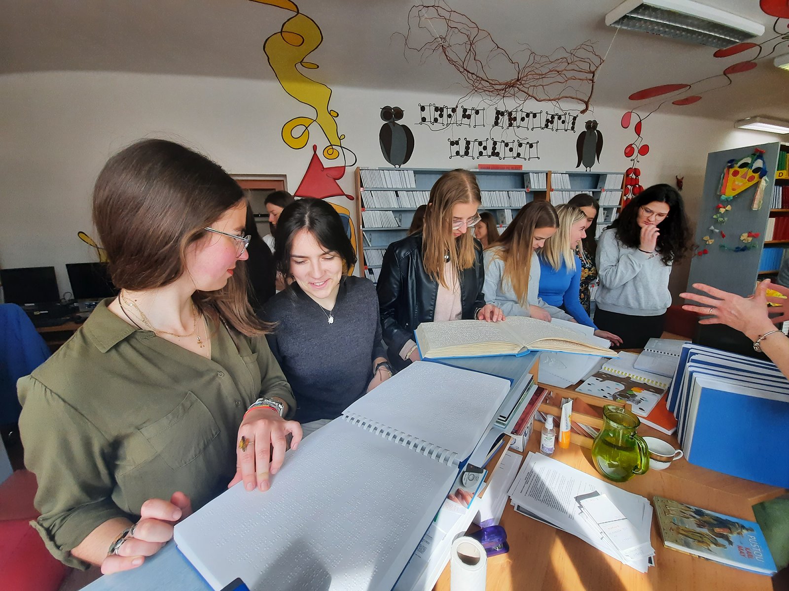 V Slovenskej knižnici pre nevidiacich Mateja Hrebendu študenti mali možnosť vidieť spracovanie a výrobu braillovských a čiernotlačových dokumentov so zväčšeným typom písma (časopisy, knihy, učebnice atď.). Zažili nahrávanie a spracovanie zvukových kníh a časopisov. Okrem toho navštívili aj slepeckú redakciu, ktorá poskytuje aktuálne a hodnoverné informácie nevidiacim a slabozrakým prostredníctvom 17-tich časopisov, ktoré vychádzajú v Braillovom písme.