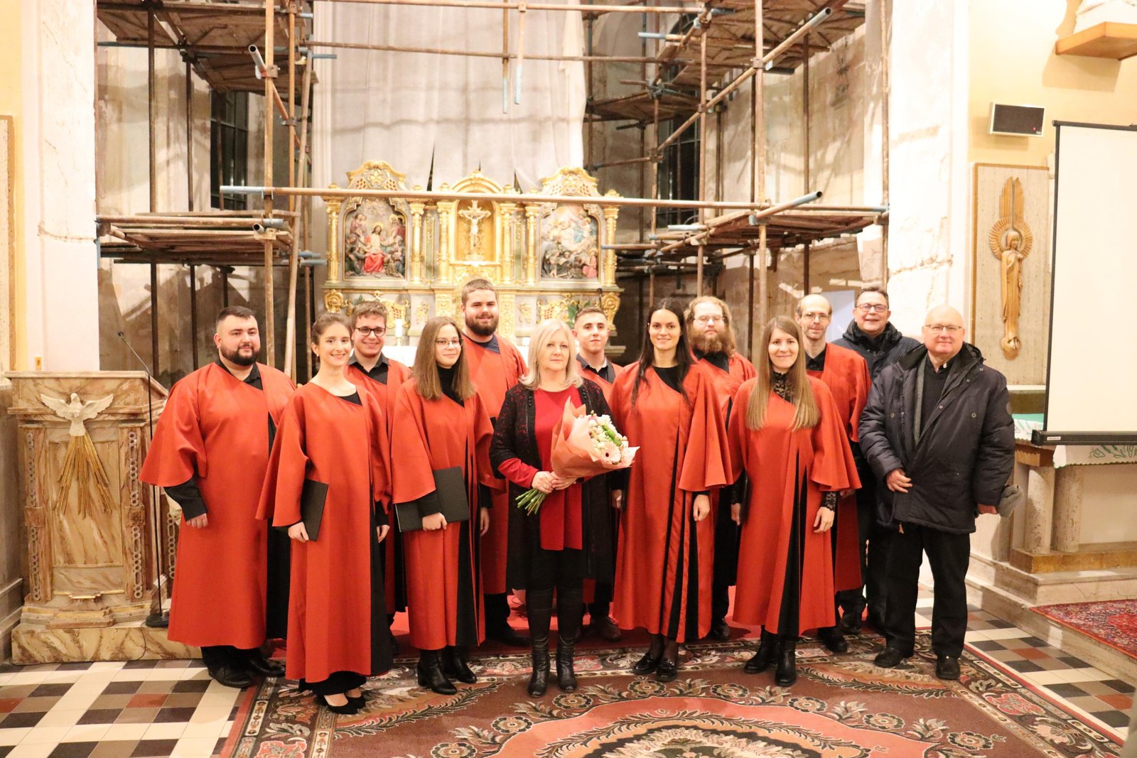 Na záver „oslavnej“ omše schóla prítomných potešila krátkym koncertným vystúpením. Dirigentka sa ujala slova a vyjadrila vďaku vedeniu univerzity, fakulty aj samotnej katedry – zvlášť kolegom Zuzane Zahradníkovej a Rastislavovi Adamkovi za dlhoročnú podporu a možnosť šírenia gregoriánskeho chorálu vo vyučovacom procese i mimo neho. Slová vďaky adresovala aj študentom všetkých 25-ročných personálnych zostáv za ich prítomnosť, pôsobenie a reprezentáciu; osobitne aktuálnej schóle za to, že prišli poďakovať svojej patrónke Sv. Cecíli a za to, že chcú spievať aj takýto málo známy liturgický spev.