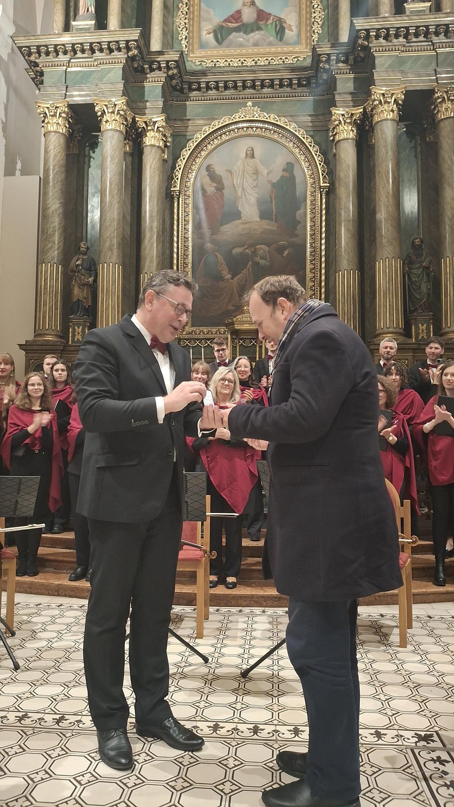 Vrcholom večera sa stalo vystúpenie univerzitného zboru Benedictus opäť pod vedením Zuzany Zahradníkovej s dielom Cantata Academica súčasného slovenského skladateľa Ľuboša Bernátha, ktorá bola skomponovaná pri príležitosti 25. výročia založenia Katolíckej univerzity. Práve vďaka tomuto dielu bol koncert na sviatok sv. Martina úzko spätý s nedávnym koncertom Alma Mater Resonat v Ružomberku. Keďže sa skladateľ premiéry v Ružomberku nemohol zúčastniť osobne, najkrajším darom, aký mu mohla katedra hudby venovať bolo prísť za ním a znovu precítiť celé dielo priamo v jeho prítomnosti. Po doznení záverečných tónov a ďakovných slov bola Ľubošovi Bernáthovi udelená pamätná medaila Katolíckej univerzity v Ružomberku, ktorú mu odovzdal prodekan pedagogickej fakulty profesor Rastislav Adamko.