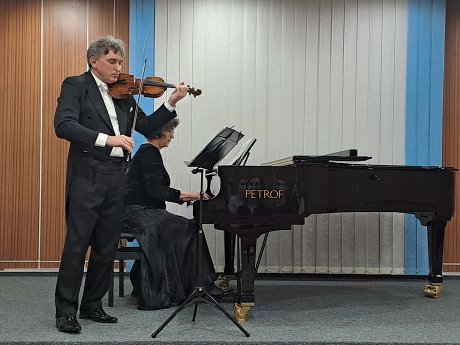 Vo štvrtok 26.3.2026 sa študenti mali možnosť zúčastniť koncertu, na ktorom sa v Koncertnej sále Katedry hudby predstavili Siergiej Wowkotrub (husle) v sprievode Olgy Wowkotrub (klavír). Koncert pozostával čisto z diel poľských skladateľov a bol dramaturgicky rozdelený do dvoch častí. V prvej časti odzneli tance (Kujawiak, Krakowiak, Oberek či Mazúr) známych skladateľov – H. Wieniawski, I. J. Paderewski, R. Statkowski a ďalší. Druhá časť koncertu patrila priemerovaným dielam súčasných skladateľov, z ktorých jedno dielo bolo autorstvom samotného interpreta. Huslista ukázal vysokú technickú zdatnosť a virtuozitu. Pizzicato, glissando, dvojzvuky, flažolet a mnohé ďalšie hráčske techniky pôsobili v jeho interpretácii presvedčivo a isto. Vysokú umeleckú hodnotu dodala koncertu aj klavírna spolupráca Olgy Wowokotrub, ktorá sa prejavila v dôslednej interpretácii klavírnych sprievodov, bohatej výrazovosti, dynamickej škále a synchrónnej súhre.