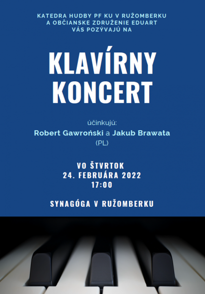 Účinkovať budú poľskí klaviristi - pedagógovia z Univerzity Jána Dlugosza v Czestochowej - Rober Gawroński a Jakub Brawata.