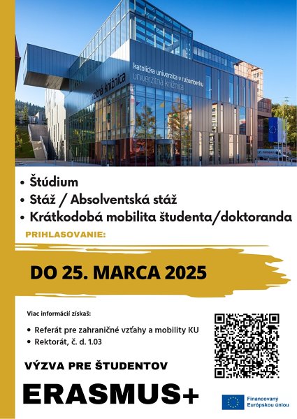 Erasmus+ pre študentov na akademický rok 2025/2026