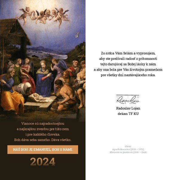 Milé študentky a študenti, vrúcne Vám prajem pokojné a požehnané vianočné sviatky. Nech nám Pán pomáha aj v novom roku!