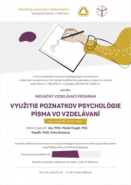 Názov inovačného vzdelávania: Využitie poznatkov psychológie písma vo vzdelávaní