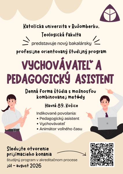 Katolícka univerzita v Ružomberku, Teologická fakulta, prináša nový profesijne orientovaný bakalársky študijný program: