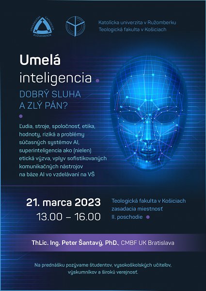 TF KU pozýva 21.3.2023 študentov, vysokoškolských učiteľov, výskumníkov a širokú verejnosť na vedecko-popularizačnú prednášku: Umelá inteligencia – dobrý sluha a zlý pán?