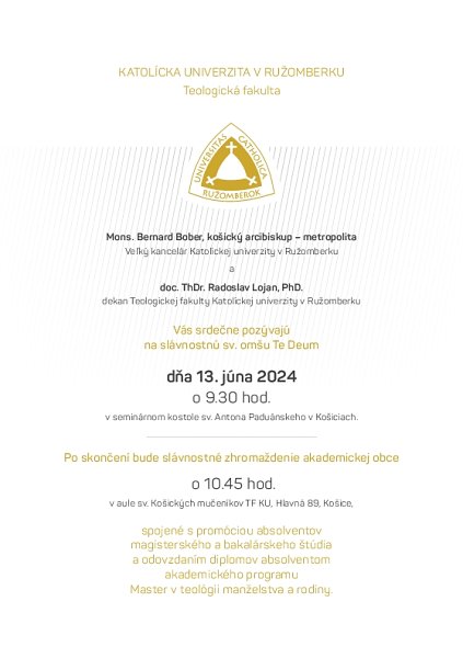 Promócia absolventov Bc. a Mgr. štúdia - 13.06.2024 o 9.30 sv.omša a 10.45 promócia v aule TF KU