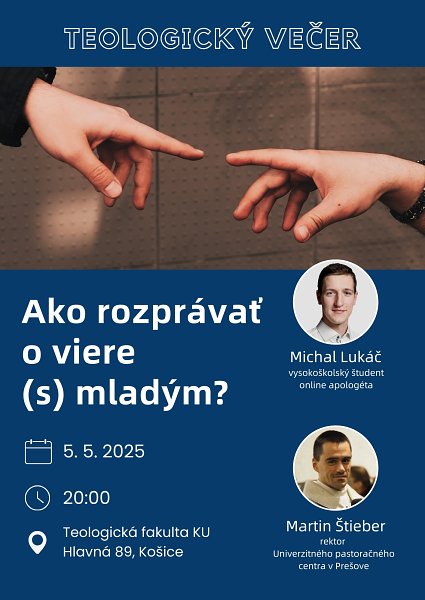 Teologický večer „Ako rozprávať o viere (s) mladým?“ na Teologickej fakulte v Košiciach 5.5.2025 o 20.00