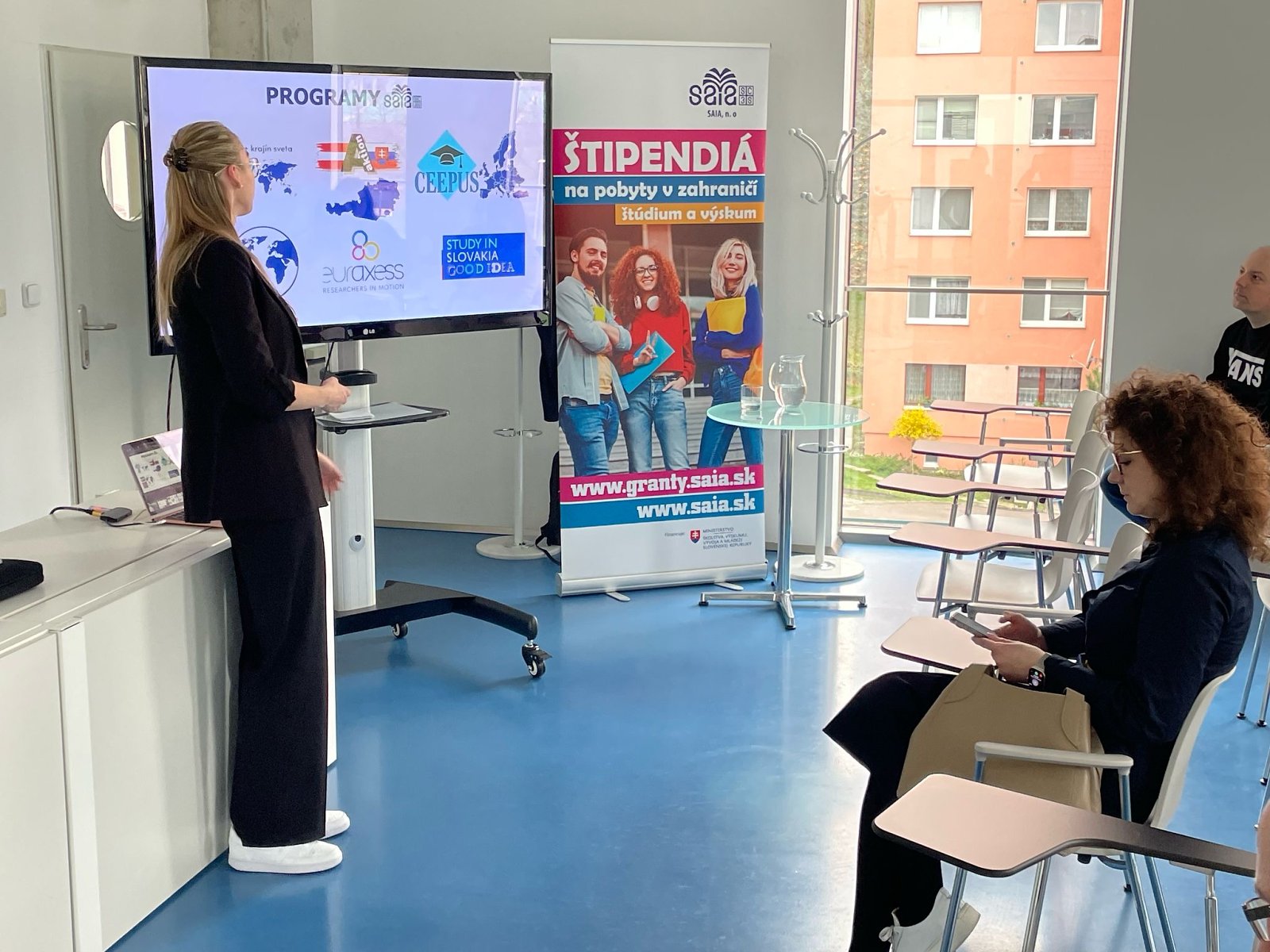 Prvé z podujatí, s názvom „Štipendiá do celého sveta – vaša cesta k medzinárodnej mobilite“, sa konalo v prvej polovici mesiaca. Program účastníkom predstavila Dr. Lenka Bugáňová z agentúry SAIA, n. o., ktorá priblížila viacero atraktívnych štipendijných a výmenných programov, vrátane CEEPUS, Národného štipendijného programu SR a Akcie Rakúsko – Slovensko. Študenti aj zamestnanci sa dozvedeli, ako sa do jednotlivých programov zapojiť, aké sú podmienky uchádzania sa a čo im jednotlivé mobility môžu priniesť po odbornej aj osobnostnej stránke. Zároveň boli upozornení, že v prípade potreby môžu využiť podporu EURAXESS centra pôsobiaceho na univerzite, ktoré im ochotne pomôže s výberom vhodného programu aj s prípravou prihlášky.