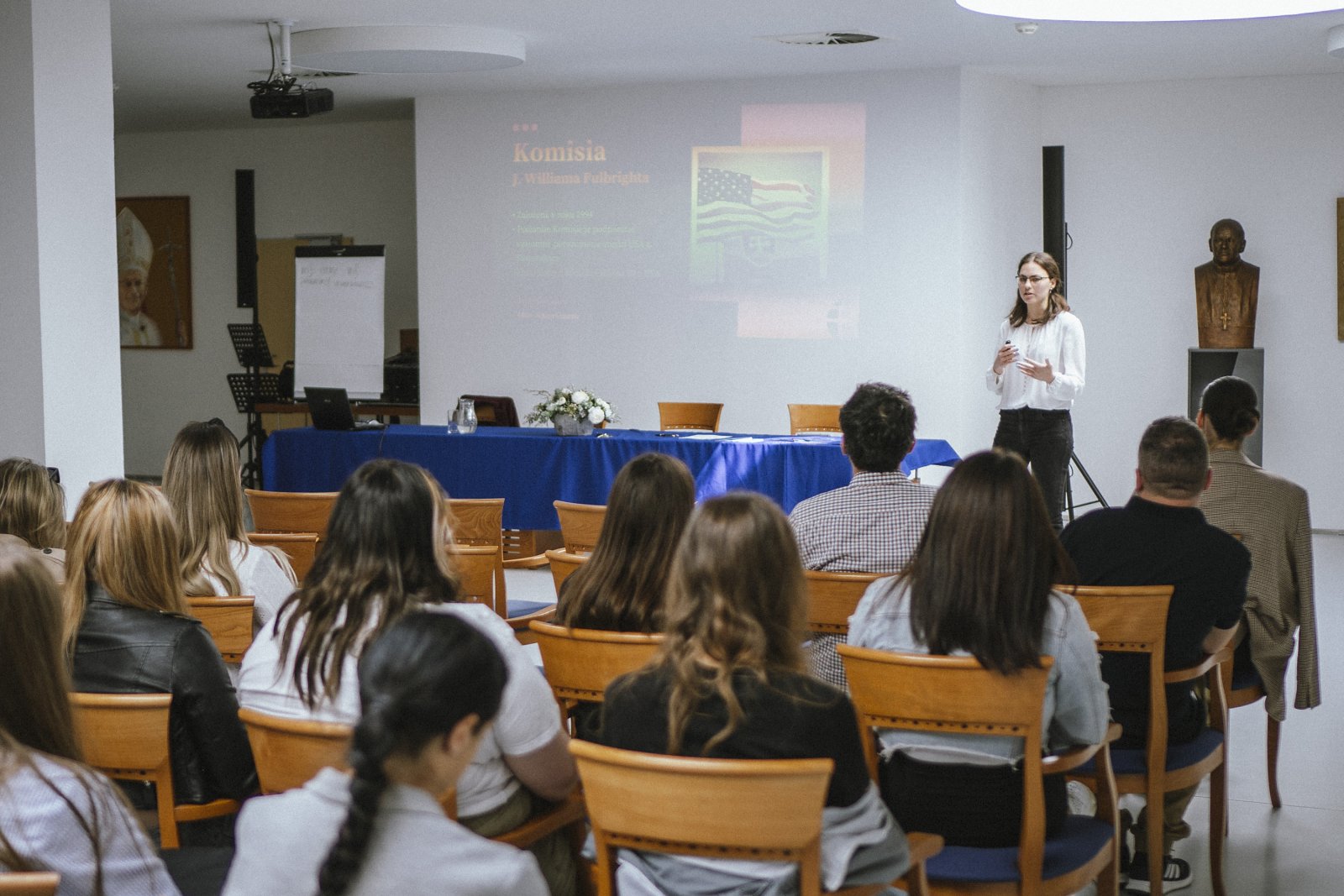 Druhé podujatie sa konalo v druhej polovici apríla pod názvom „Staň sa Fulbrighterom – prestížne štipendium pre štúdium a výskum v USA“. Fulbright program na pôde KU predstavila Mgr. Silvia Miadoková, členka Fulbrightovej komisie na Slovensku, ktorá informovala o možnostiach štúdia, výskumu a lektorských pobytov na univerzitách v USA. Záujemcovia sa dozvedeli viac o procese podávania prihlášok, výberových kritériách aj benefitoch, ktoré účasť v programe prináša. Výnimočným prínosom seminára bolo aj vystúpenie kolegu z Katolíckej univerzity, pána Dr. Kravčáka, ktorý je absolventom Fulbright programu. Podelil sa o svoju osobnú skúsenosť s pobytom v USA, o výzvy, ktoré musel prekonať, a o profesionálne aj ľudské obohatenie, ktoré mu program priniesol.