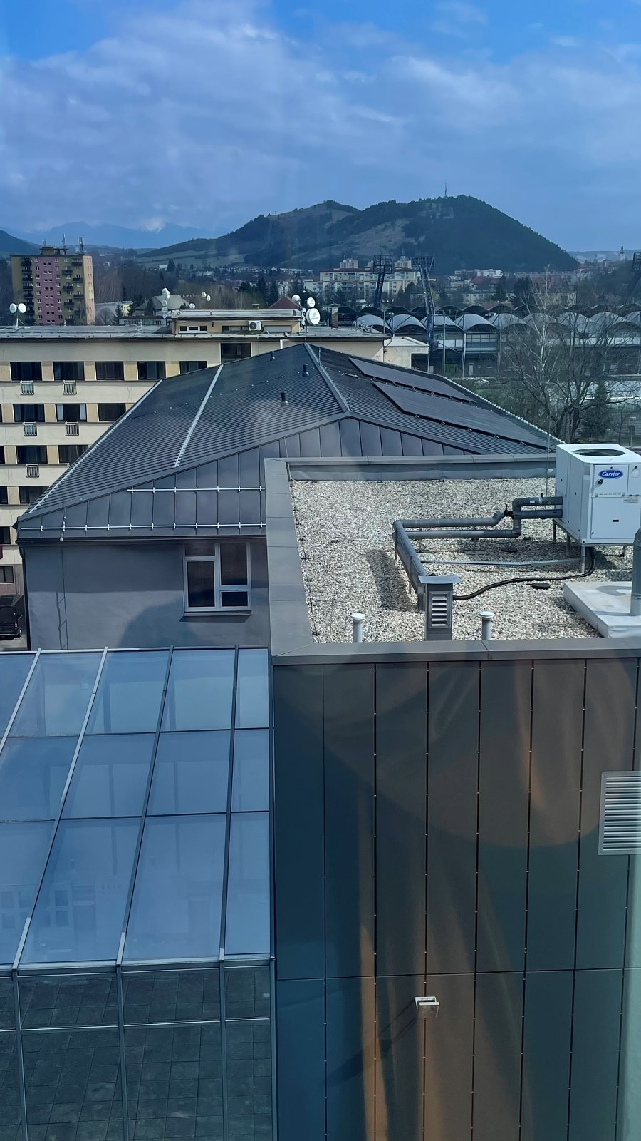 Aj vďaka miernej zime napredovali stavebné práce na streche budovy. Bola realizovaná inštalácia fotovoltaických panelov o celkovom výkone 23,7 kWp. Jedná sa vôbec o prvú FTV na našej univerzite. V rámci interiéru budovy prebehla komplexná výmena svietidiel za zdroje na báze LED, ktoré sa vyznačujú dlhšou životnosťou, ako aj lepšou svietivosťou a najmä optimálnou vlnovou dĺžkou emitovaného svetla.