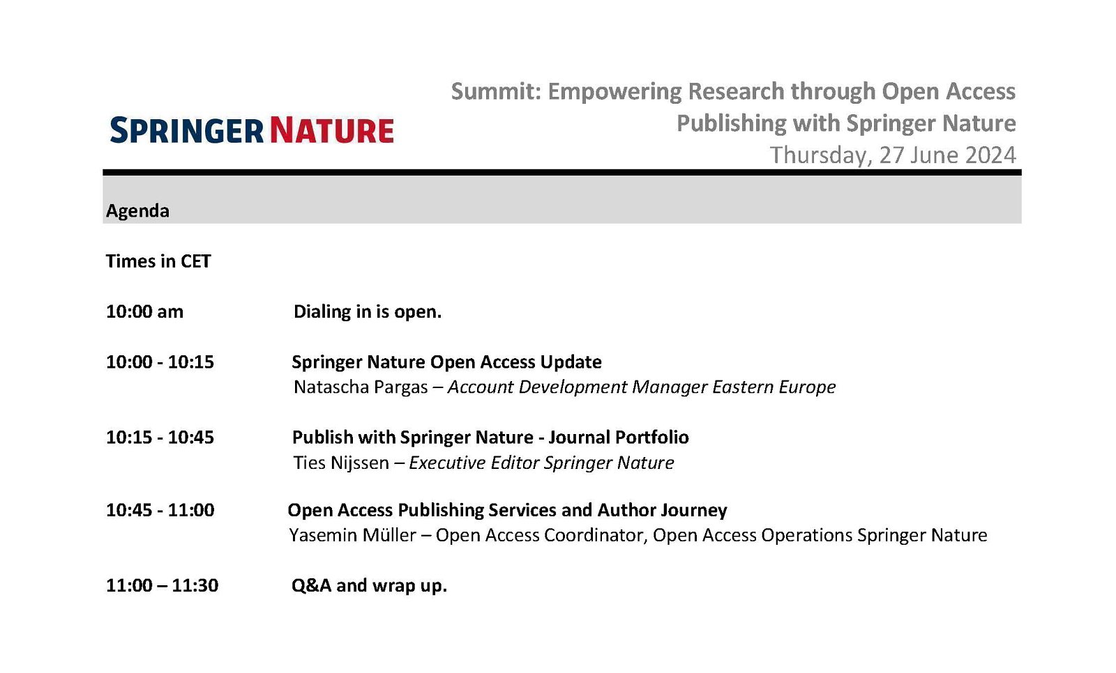 Vydavateľstvo Springer Nature organizuje online podujatie: Summit ‘Empowering Research through Open Access Publishing with Springer Nature’. Podujatie sa koná vo štvrtok 27. júna 2024 o 10.00 hod.