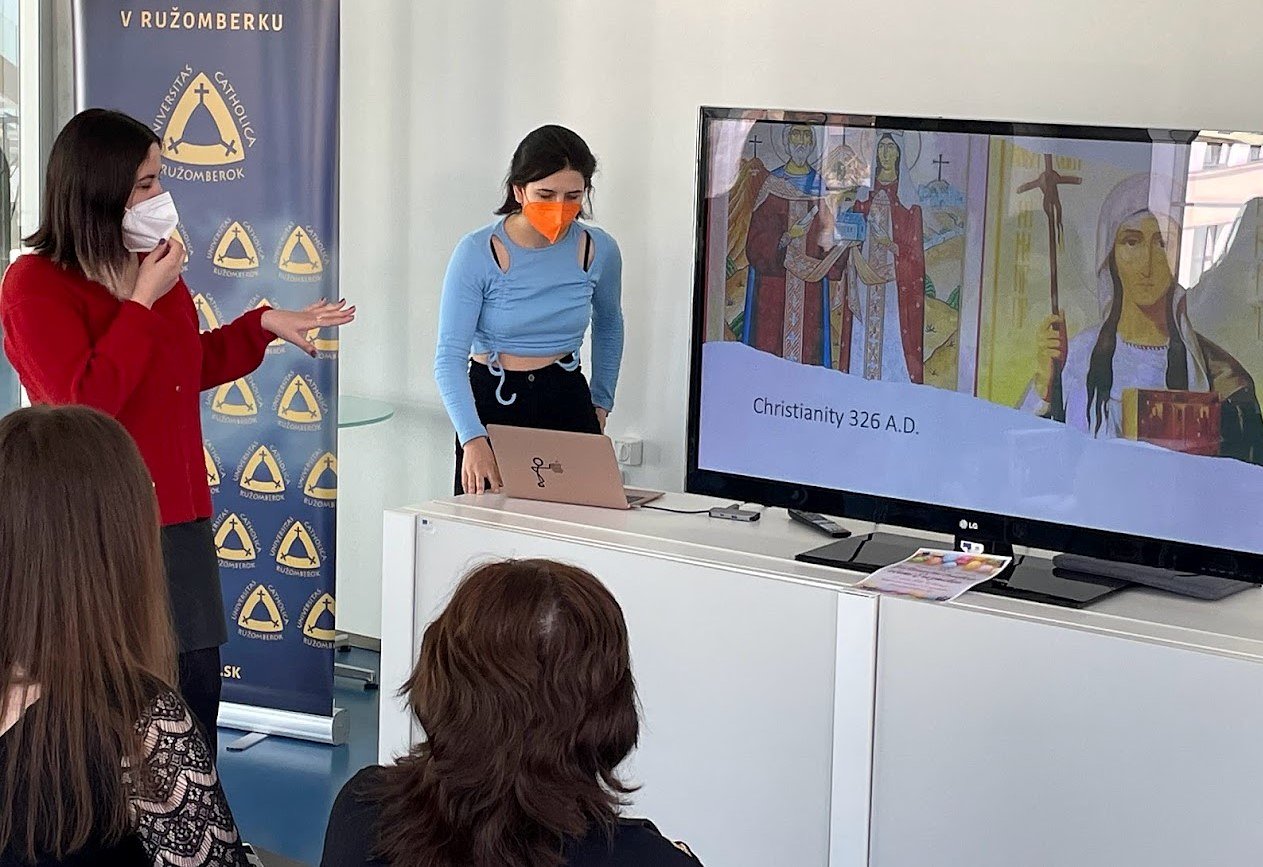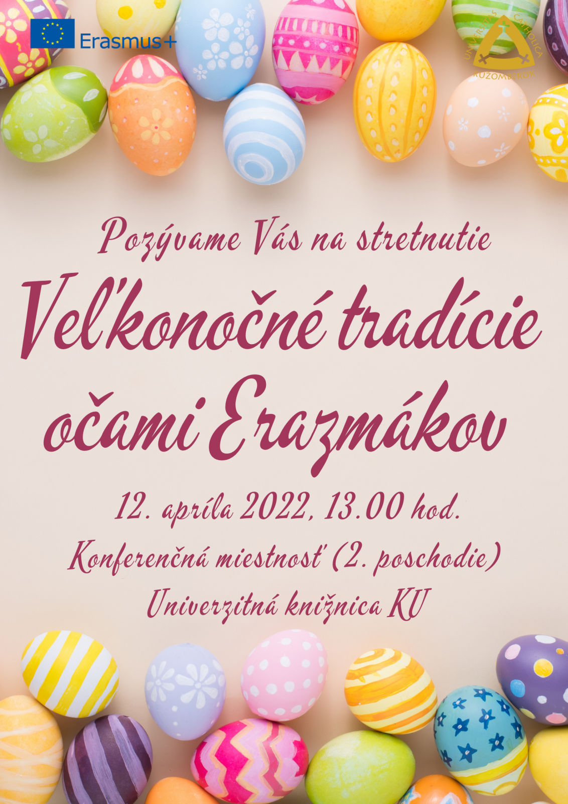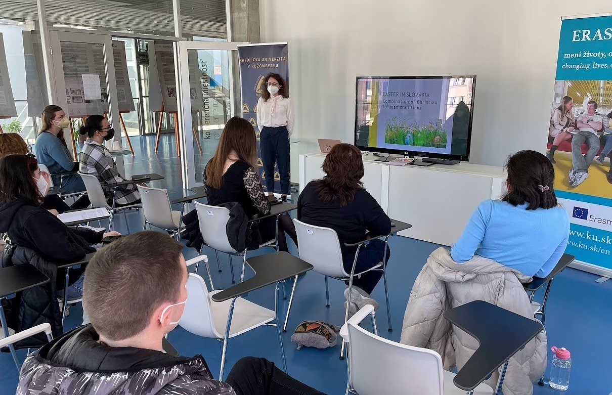 Pracovníci Referátu pre zahraničné vzťahy a mobility KU v Ružomberku pripravili v priestoroch Univerzitnej knižnice KU Veľkonočné stretnutie so zahraničnými študentmi a pracovníkmi, ktorí dostali možnosť prezentovať veľkonočné zvyky a tradície na Slovensku, Gruzínsku, Ukrajine, Taliansku a Kirgizsku.