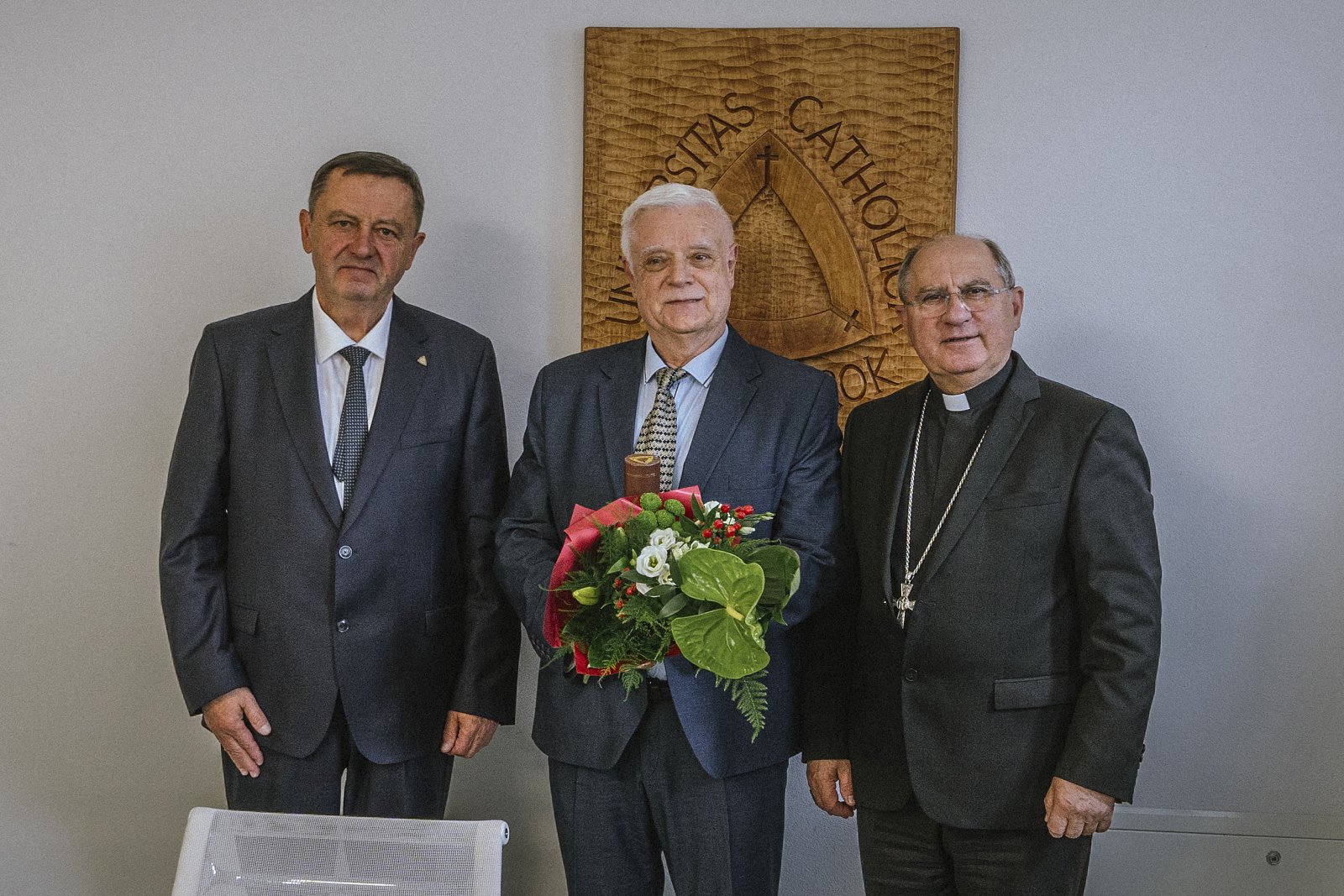 Rektor KU Jaroslav Demko poďakoval profesorovi za jeho vytrvalú a neúnavnú prácu nielen na poli pedagogiky ale aj na poli formovania Katolíckej univerzity v Ružomberku.
