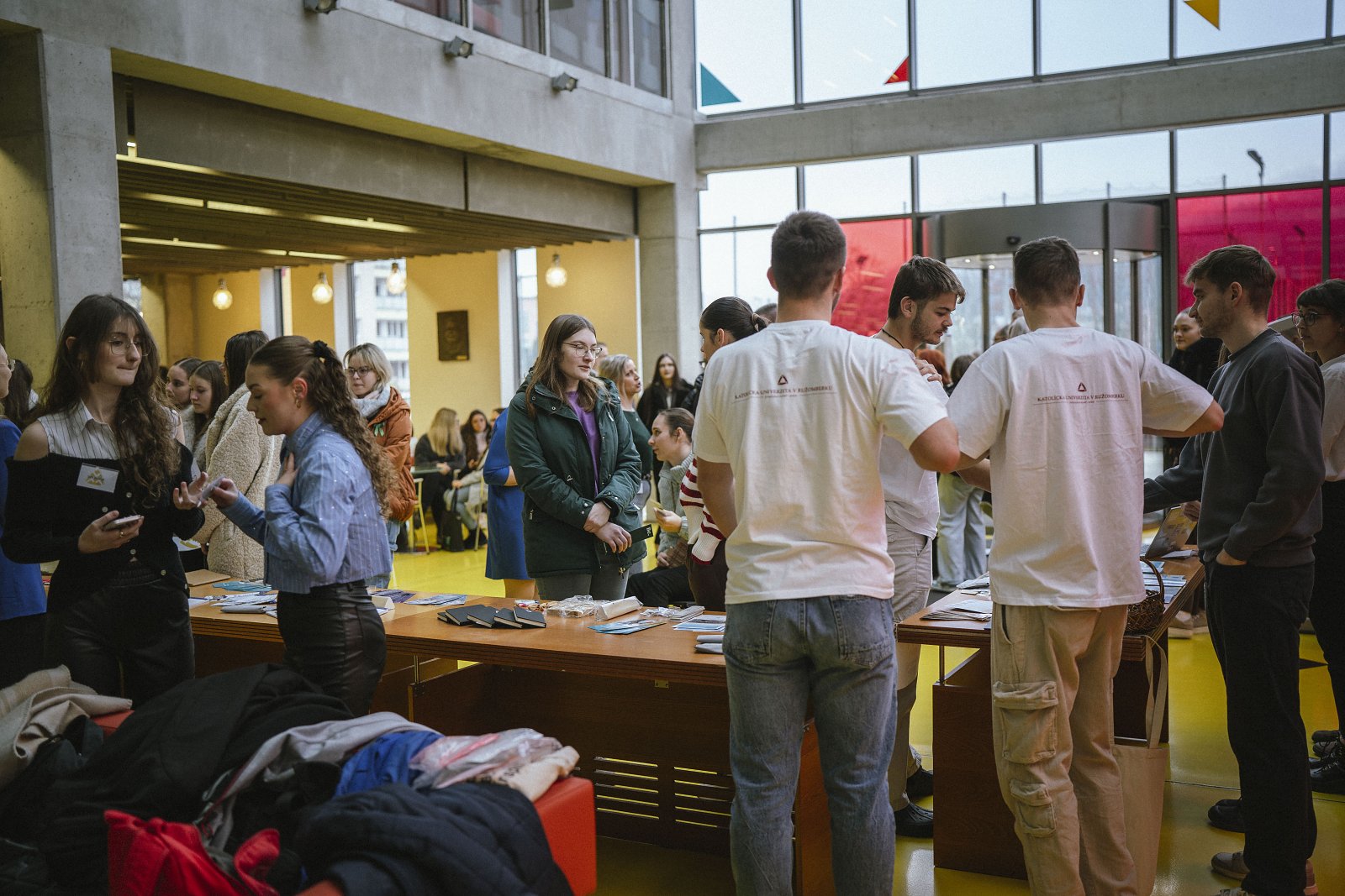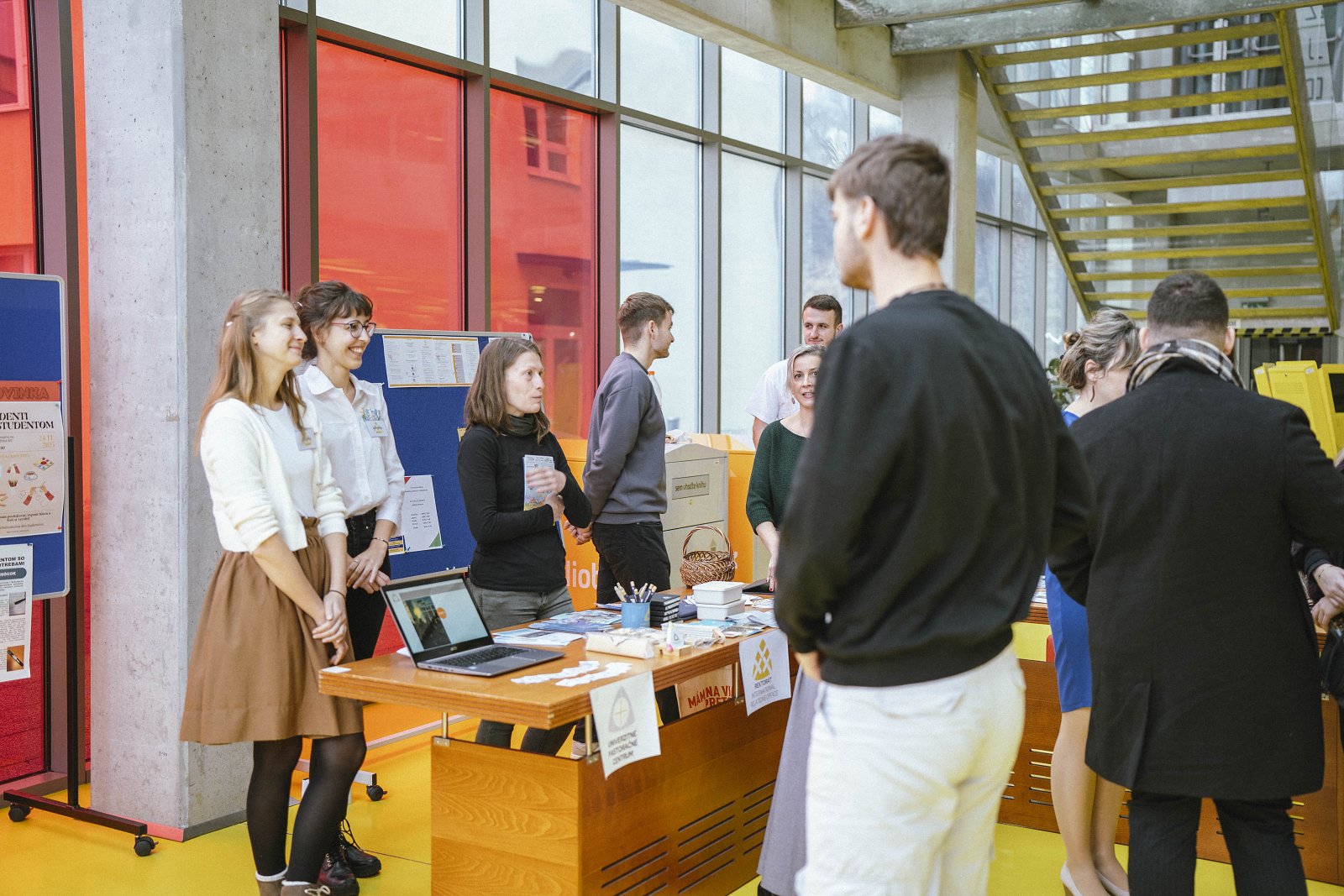S kávou v ruke sa mnohí potulovali okolo stolov fakúlt a pracovísk, ktoré mali svoje zastúpenie už v úvodnej „knižničnej“ časti. Záujemcom o štúdium sa prihovoril prorektor Martin Taraj a prorektorka Markéta Rusnáková. Budúcim študentom vysvetlili najväčšie výhody štúdia na univerzite a tiež aj bohaté možnosti zahraničných pobytov, ktoré vďaka svojim medzinárodným spoluprácam ponúkame. Posledné slovo patrilo pátrovi Tomášovi Gerbocovi SVD z UPaC.