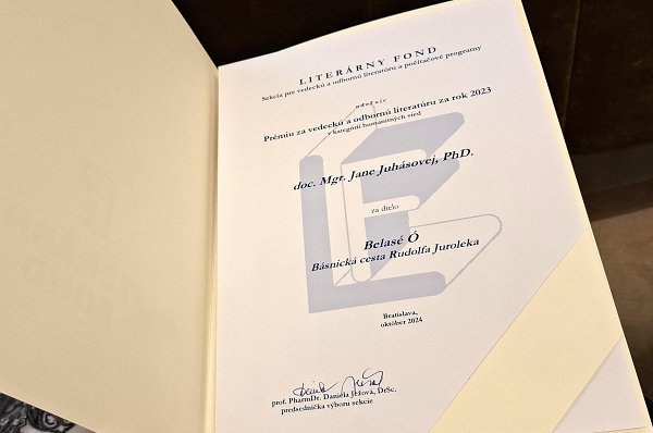 1. októbra 2024 bola monografia Belasé Ó. Básnická cesta Rudolfa Juroleka ocenená v Zichyho paláci v Bratislave Prémiou Literárneho fondu za rok 2023 v oblasti vedecká a odborná literatúra, kategória humanitné vedy. Členmi odbornej poroty boli doc. PhDr. Vladimír Segeš, PhD., Mgr. Róbert Karul, PhD., prof. PhDr. Peter Žeňuch, DrSc. a doc. PhDr. Ivan Mrva, CSc.