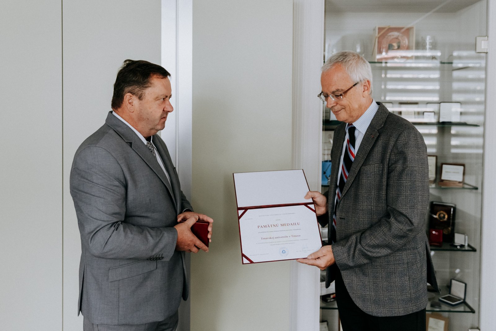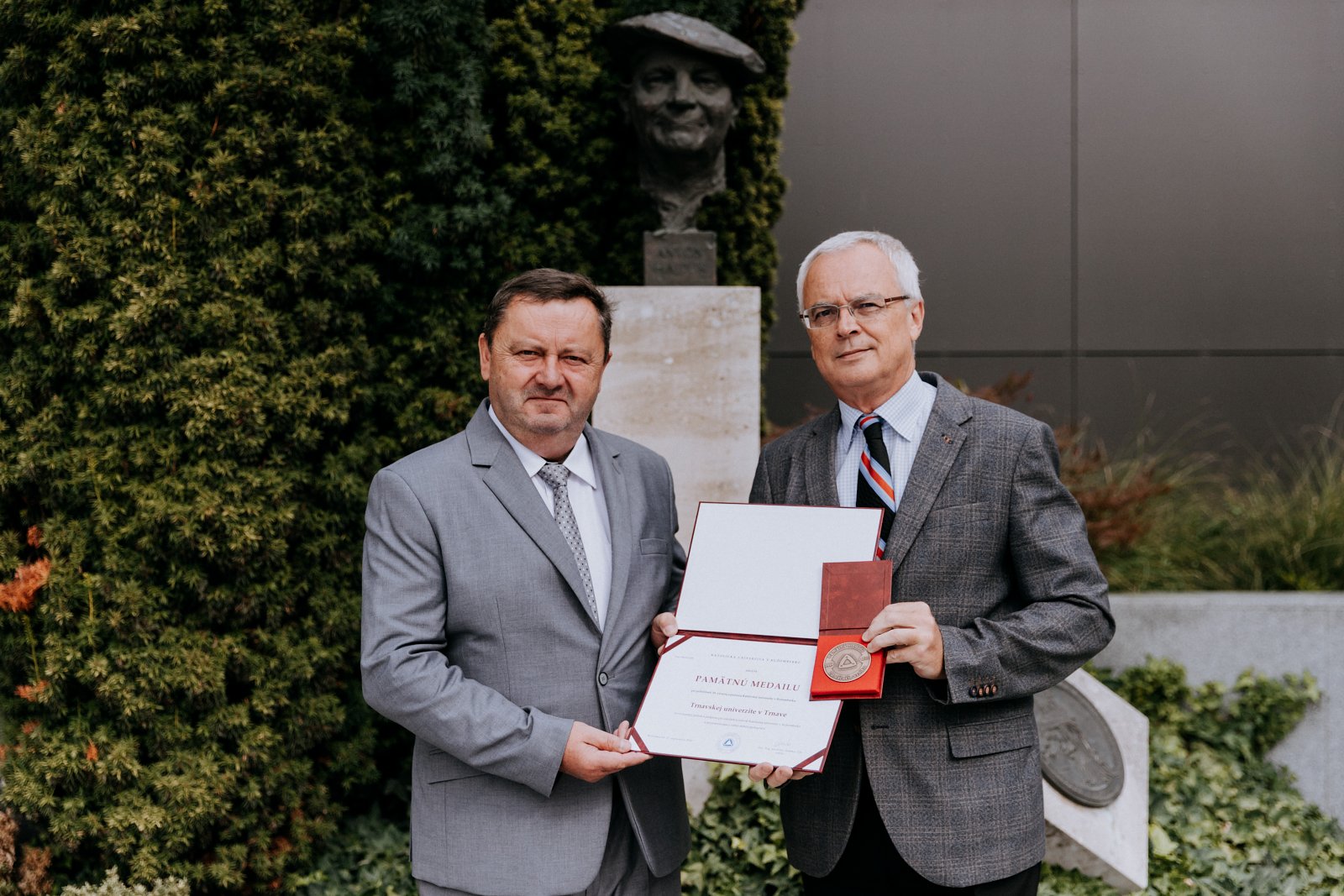 Katolícka univerzita v Ružomberku si vlani pripomenula 20 rokov od svojho založenia. Pri tejto príležitosti odovzdal jej rektor doc. Jaroslav Demko pamätnú medailu Trnavskej univerzite v Trnave, ktorú prevzal rektor prof. René Bílik.