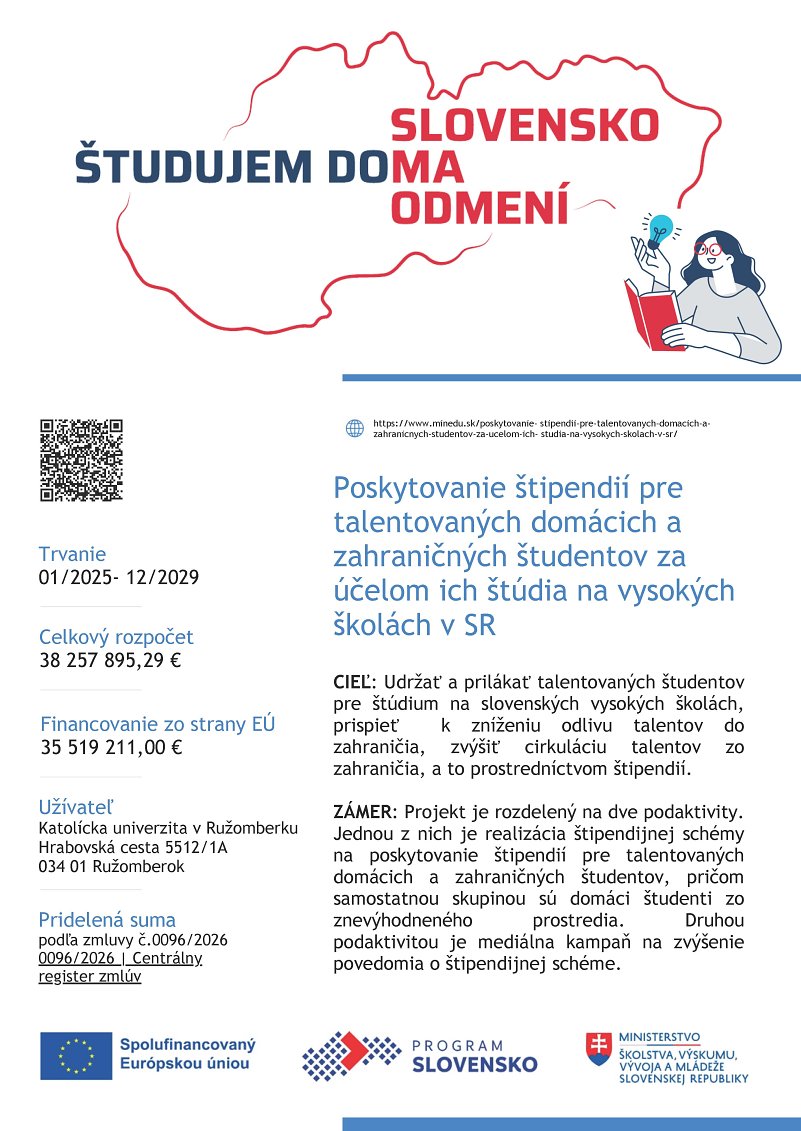 Poskytovanie štipendií pre talentovaných domácich a zahraničných študentov za účelom ich štúdia na vysokých školách v SR kód projektu 401101C957