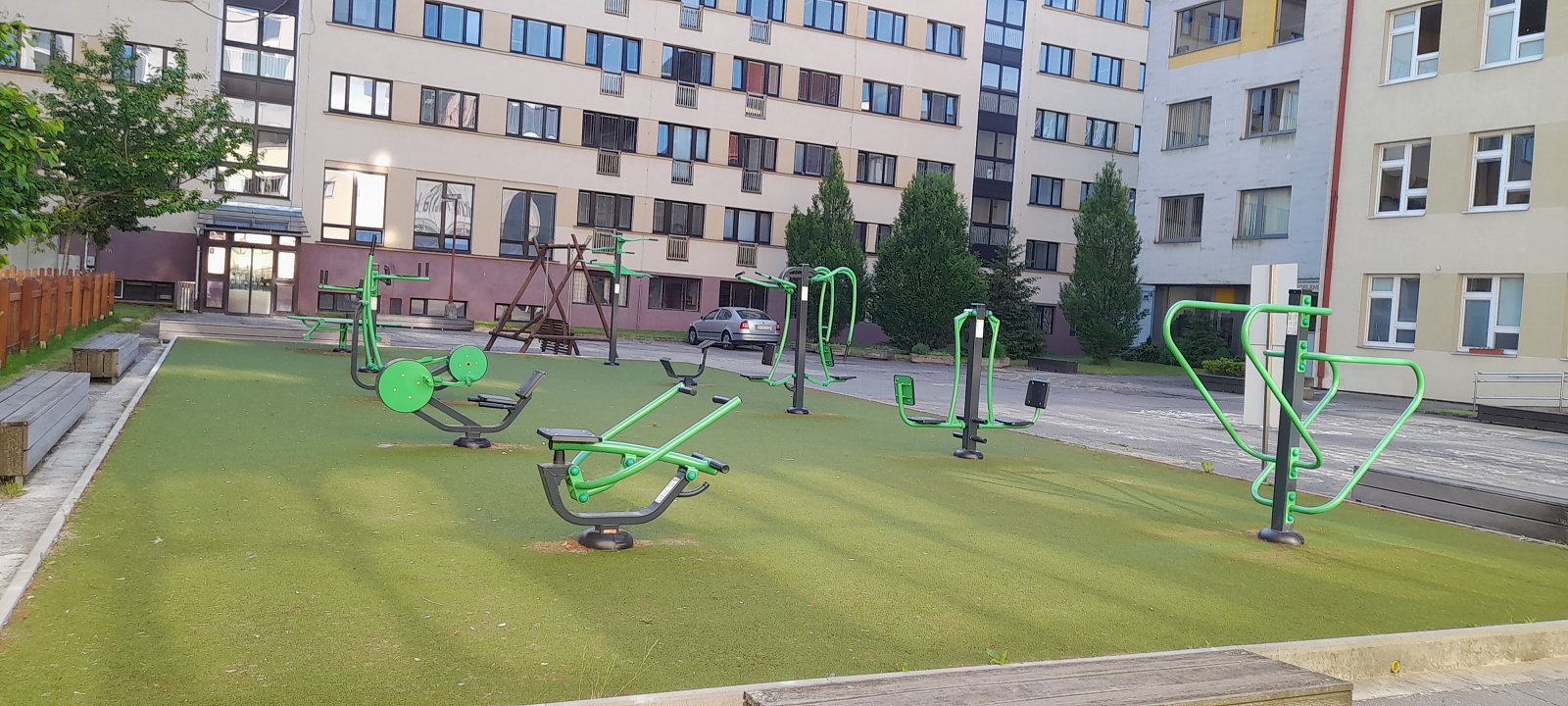 V objekte sa nachádzajú spoločné kuchynky, práčovňa, spoločenská miestnosť, posilňovňa, malá polyfunkčná telocvičňa, kaplnka, jedáleň. Vo vonkajších priestoroch areálu sa nachádza ihrisko na loptové hry a vonkajšie fitness centrum.