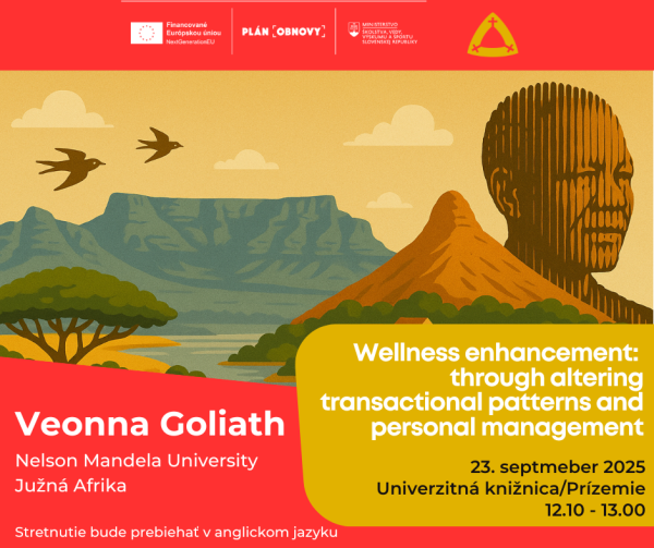 Aj v tomto akademickom roku pokračujeme v sérii neformálnych stretnutí so zamestnancami a študentmi KU v Ružomberku počas ktorých je možnosť stretnúť sa so zaujímavými hosťami a diskutovať na aktuálne témy. Aktuálna téma je „Wellness enhancement: through altering transactional patterns and personal management“. Budeme sa venovať problematike zlepšenia kvality nášho života z pohľadu toho, ako ľudia riadia sami seba (osobné riadenie) a ako komunikujú s ostatnými (transakčné vzorce).